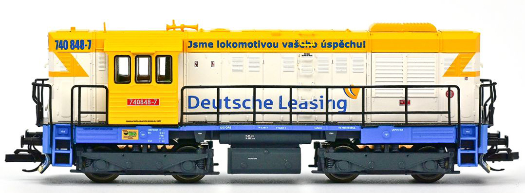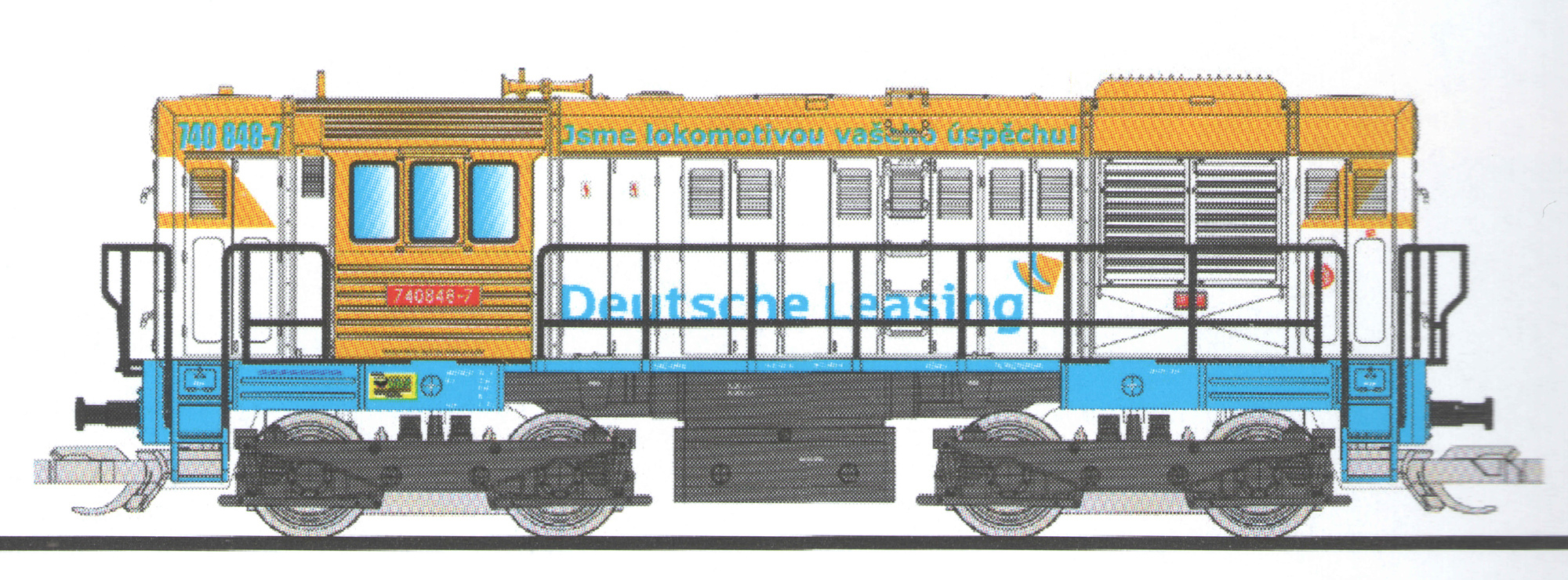 Popis   dieselová lokomotiva oranžová-bílá, modrý rám, černý pojezd „Deutsche Leasing“
