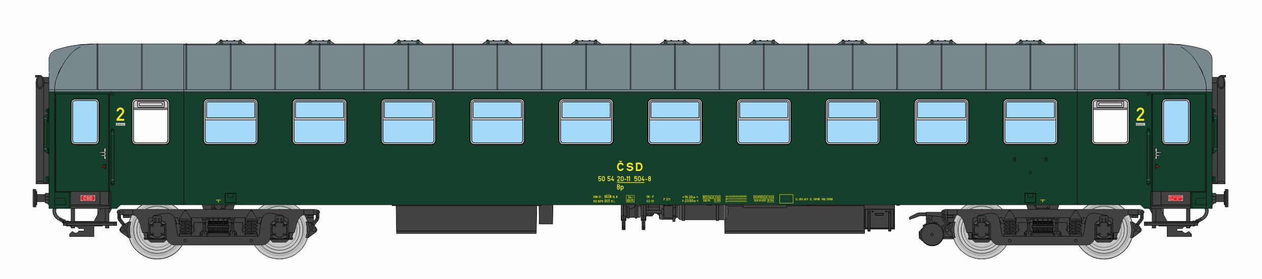 | • 50 54 20-11 504-8 | → | vůz druhé třídy 10 oddílů |