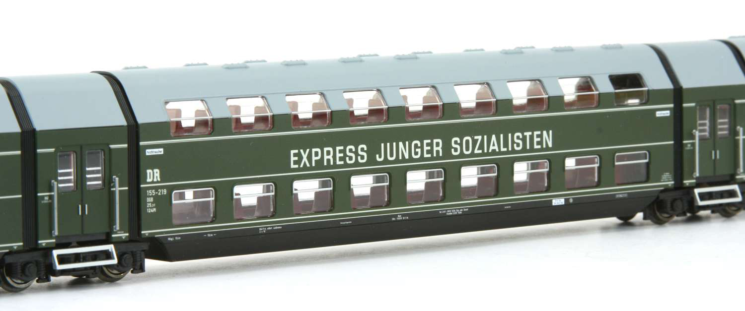 | pětidílná patrová jednotka zelená s šedou střechou „Express junger Sozialisten“ |