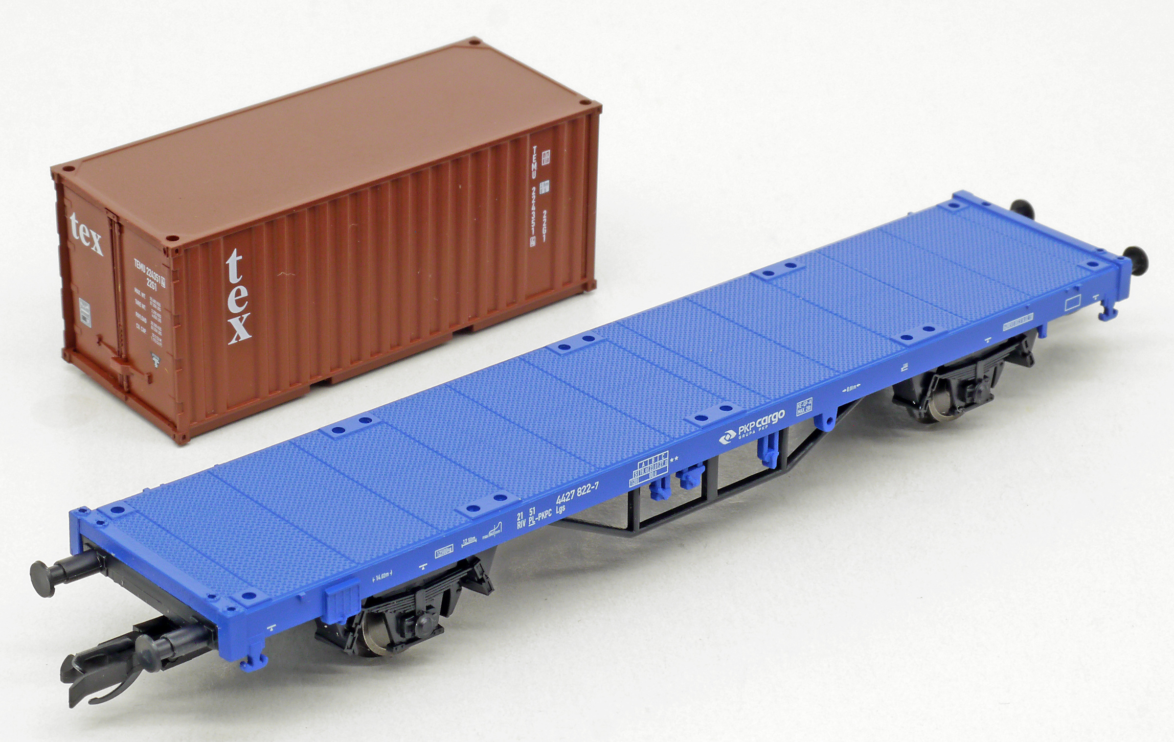 | plošinový vůz modrý s nákladem 1x 20' kontejneru „tex“ |