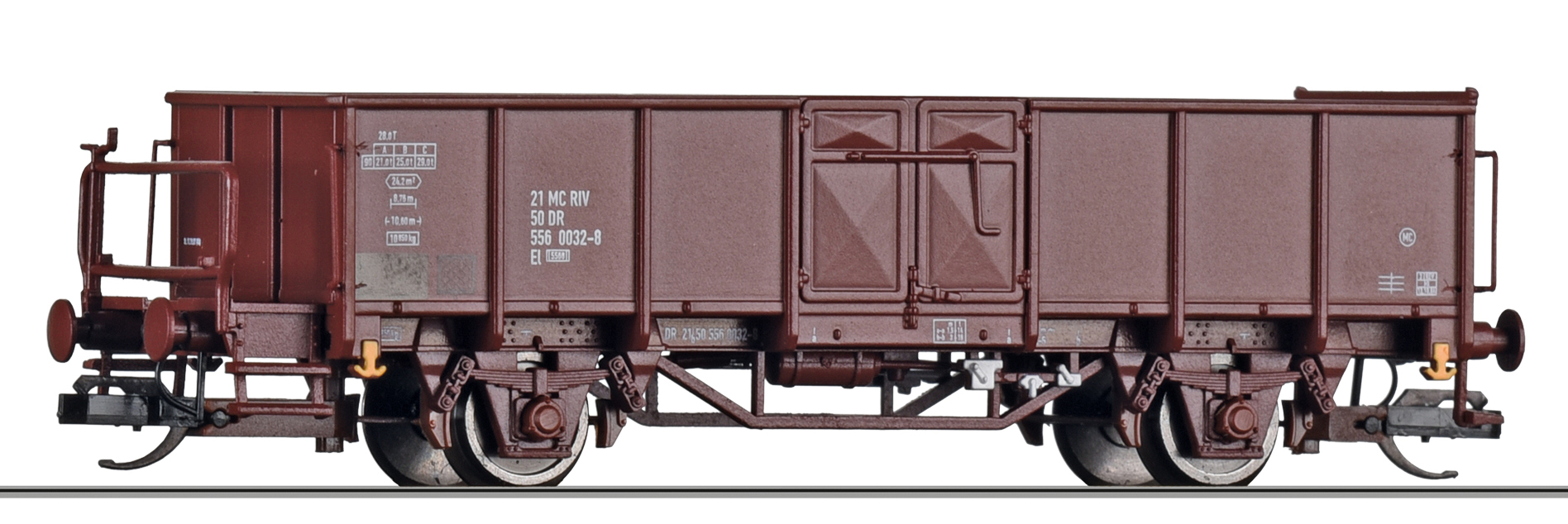 měřítko 1:120 - rozchod kolejí 12 mm kinematika krátkého spřáhla (KKK) podle normy NEM 358 260 mm - celková délka modelu přes nárazníky 3x2 - celkový počet náprav nebo rozložení náprav 350 g - hmotnost brutto - model včetně prodejního obalu