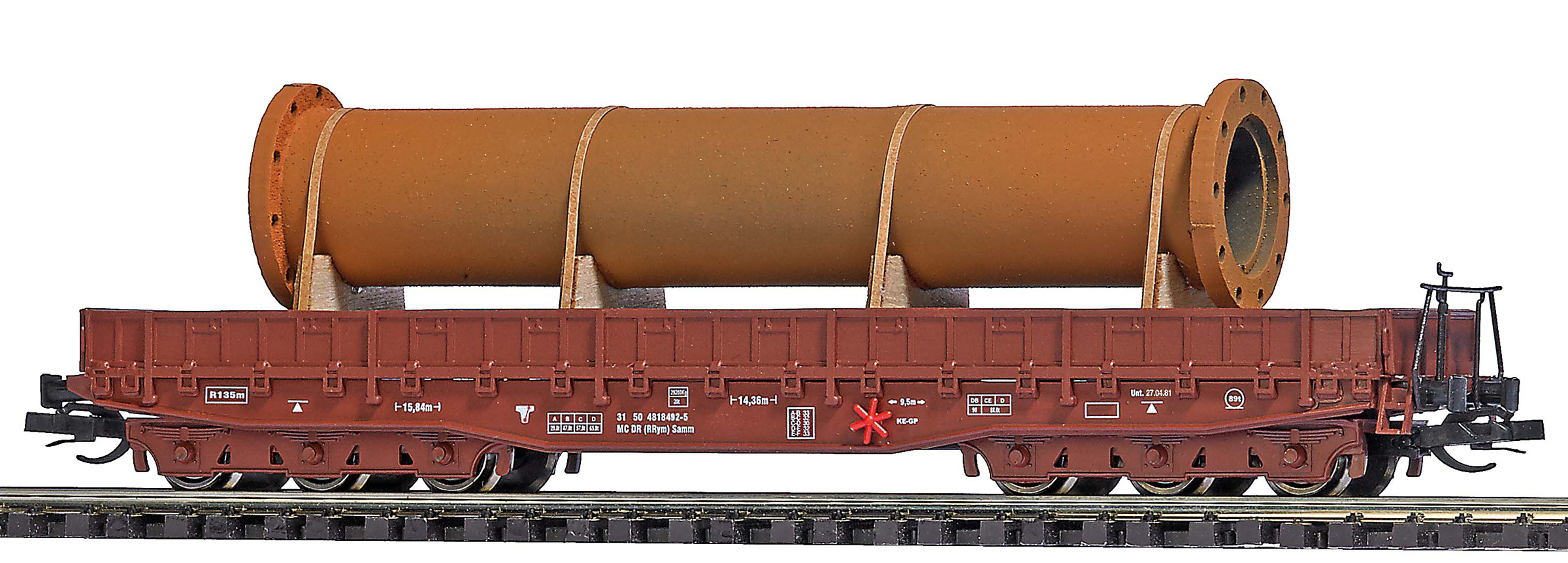 | nízkostěnný nákladní vůz červenohnědý s nákladem přírubové trubky |