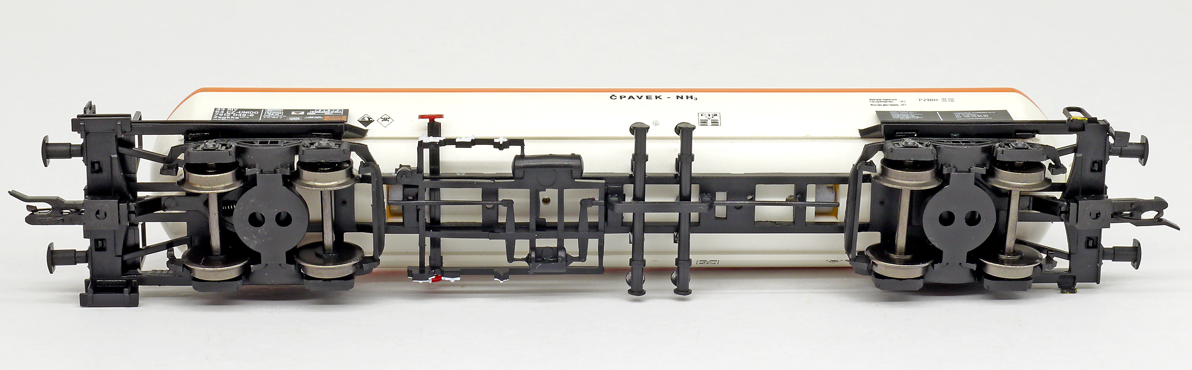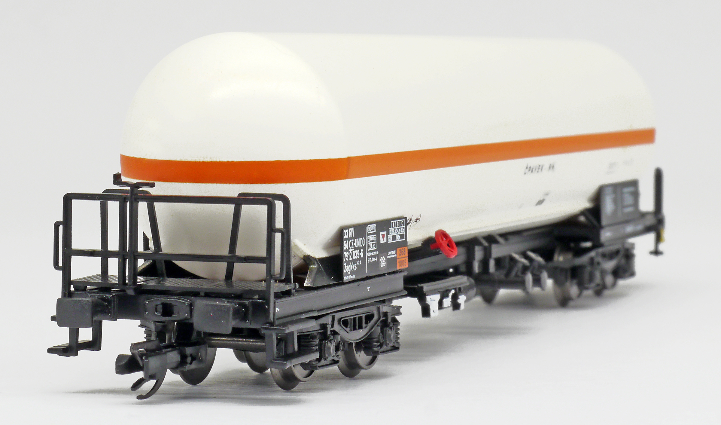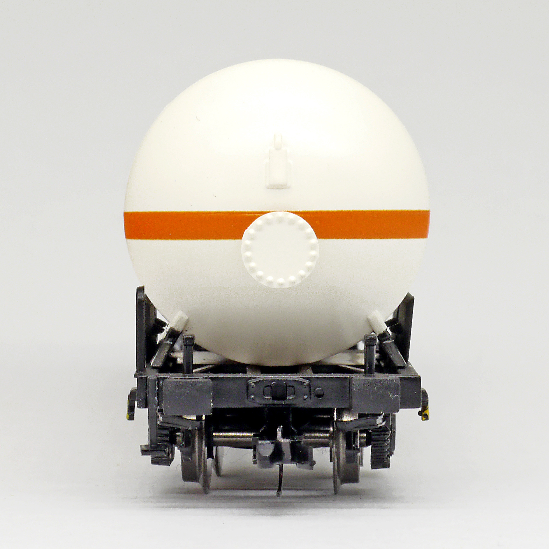 | kotlový vůz světle krémový s oranžovým proužkem na přepravu čpavku |