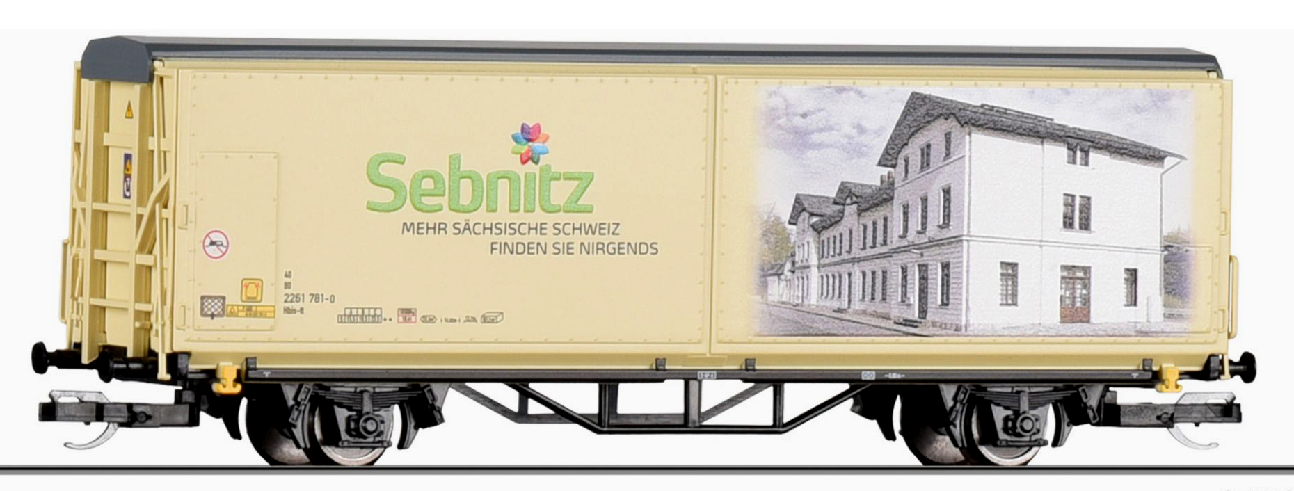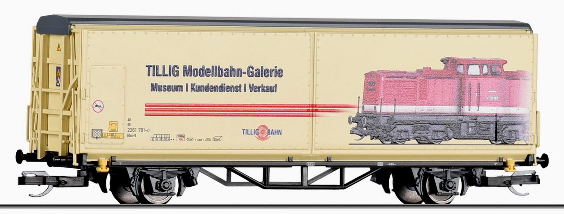 | krytý nákladní vůz s posuvnými bočnicemi a s reklamním potiskem „TILLIG/Sebnitz“ |