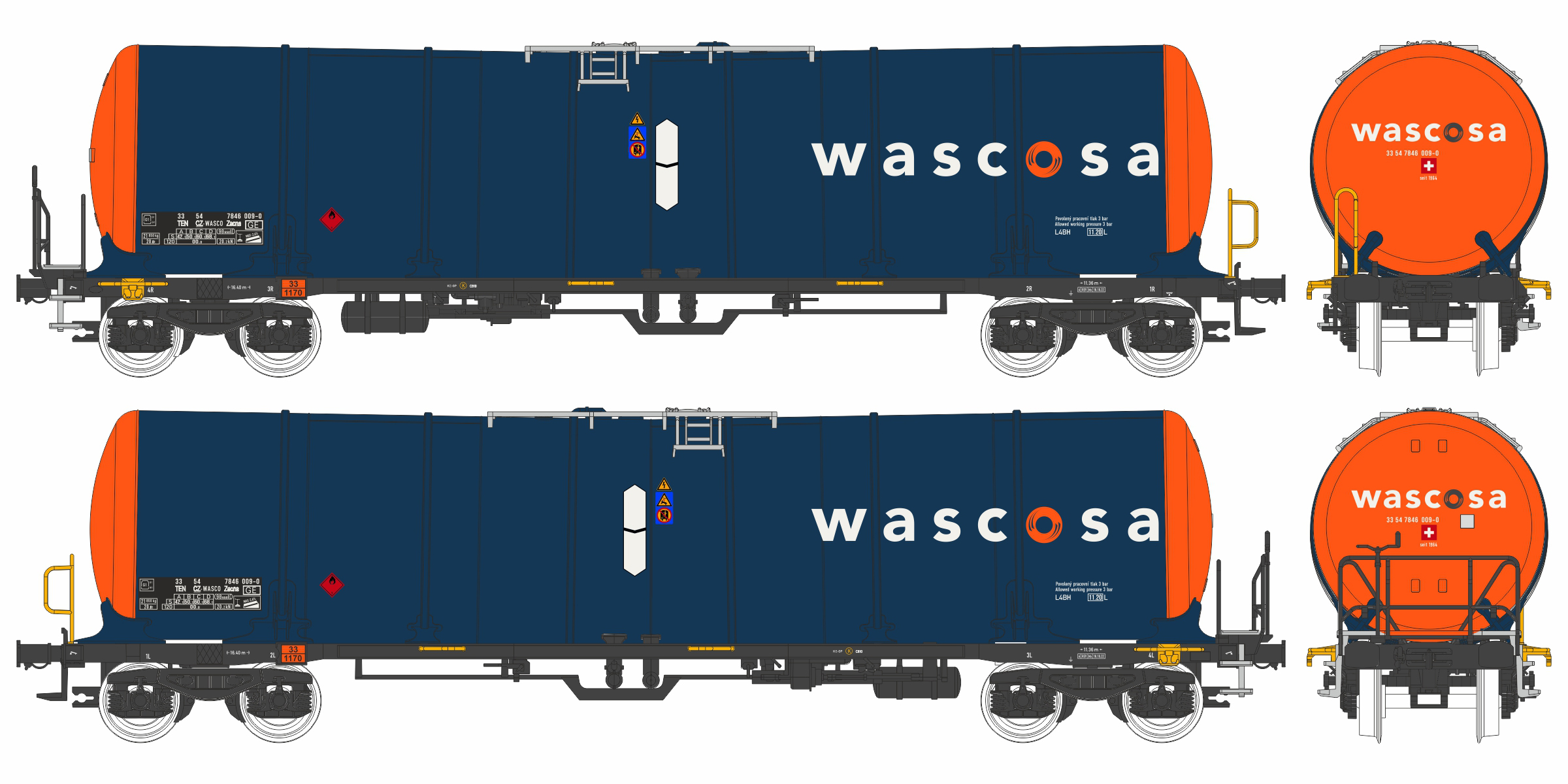 | kotlový vůz modrý-oranžový s logem „wascosa“ |