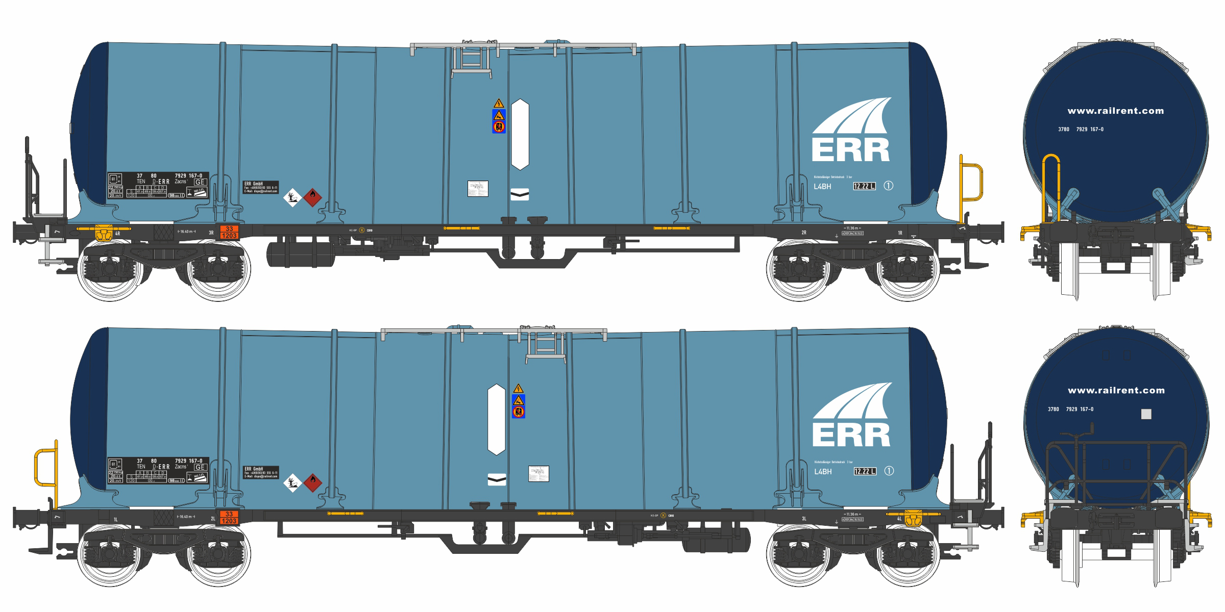 | kotlový vůz světle modrý-tmavě modrý s logem „ERR“ |