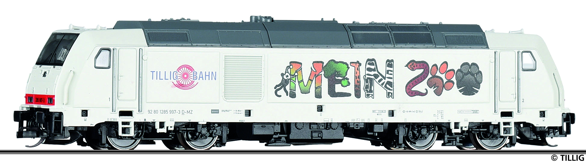 | dieselová lokomotiva s reklamním potiskem „Mein Zoo“ |