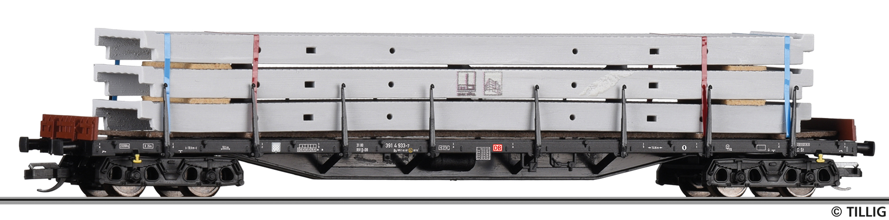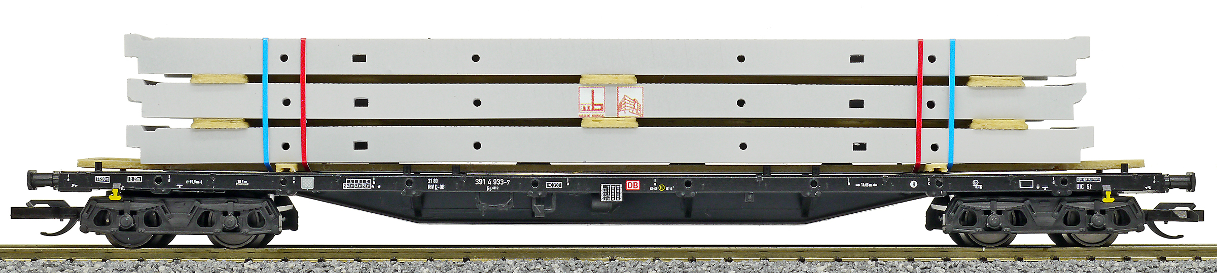 | nákladní plošinový vůz ložený korýtkovými stropními panely |