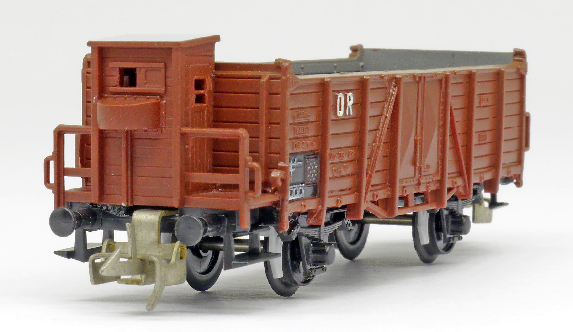 otevřený nákladní vůz červenohnědý s brzdařskou budkou