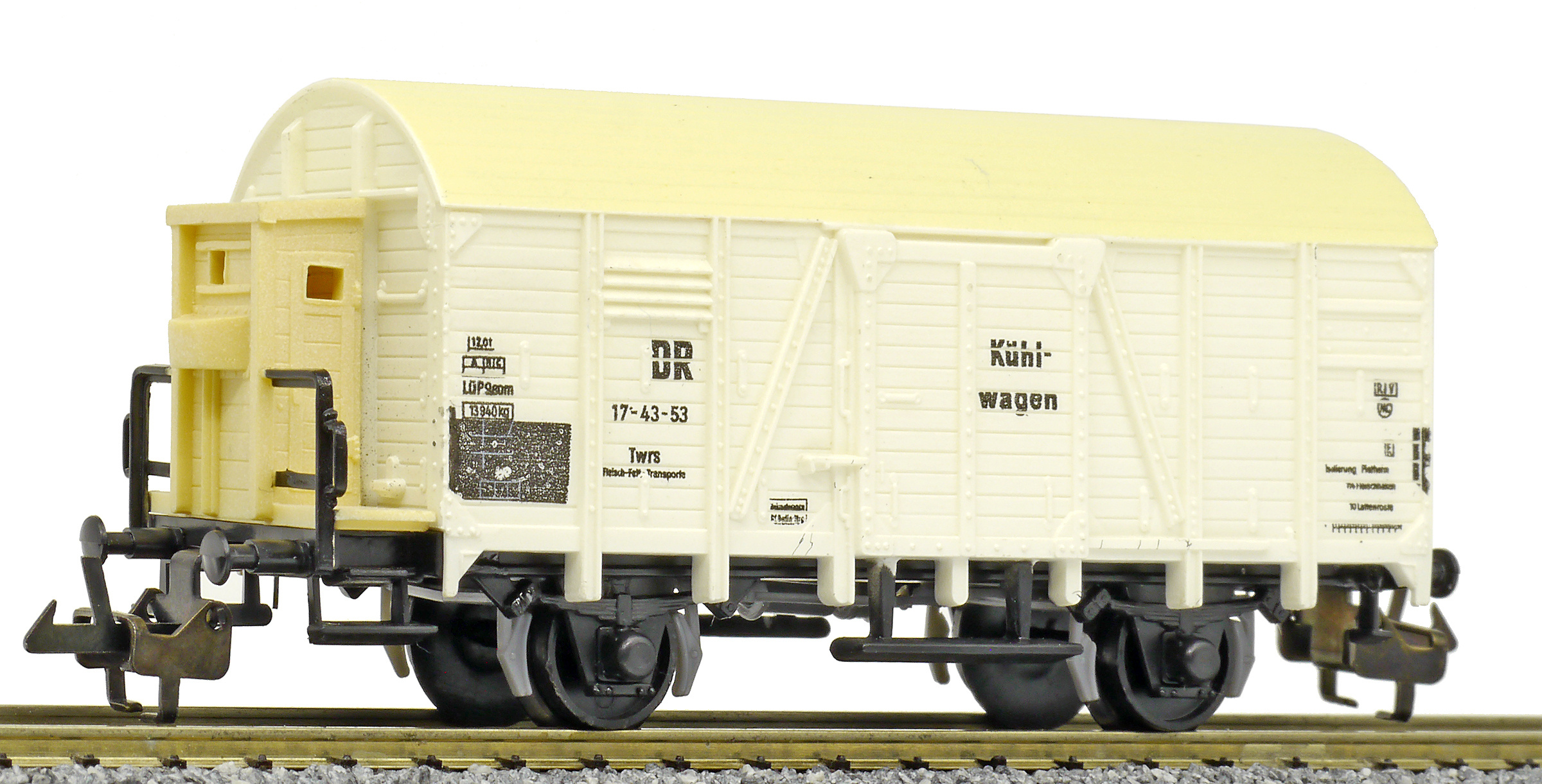 nákladní chladící vůz bílý s krémovou střechou „Kühlwagen“ a s brzdařskou budkou