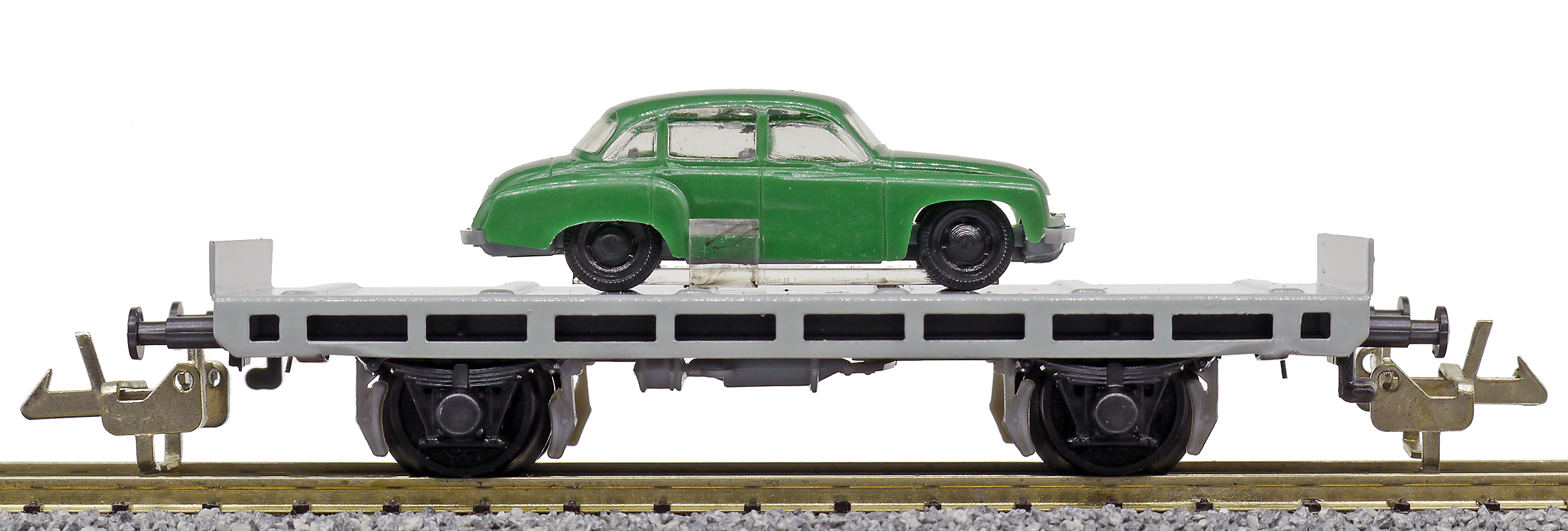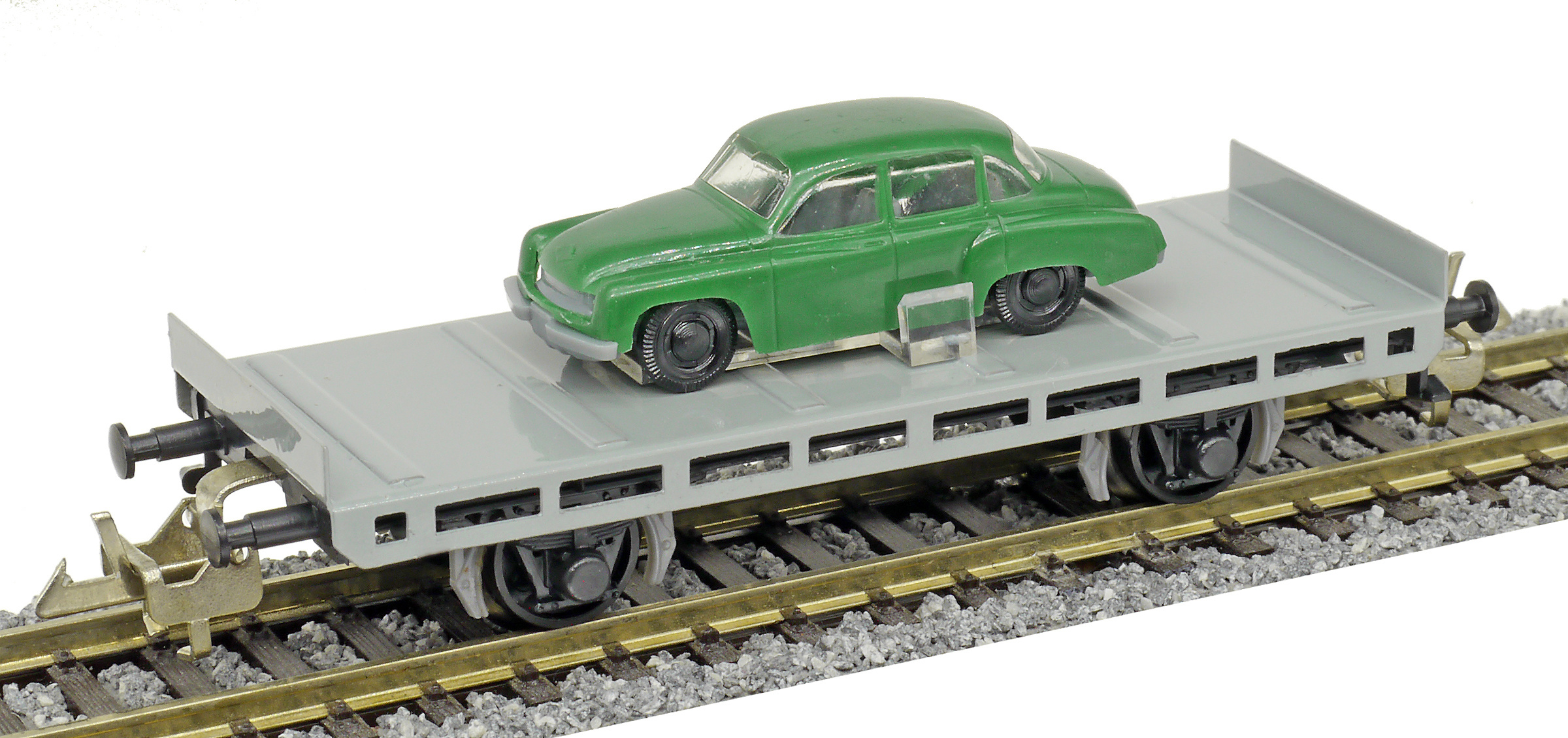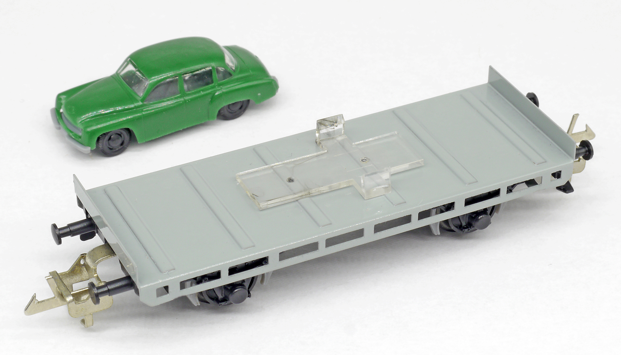 plošinový nákladní vůz s nákladem auta „Wartburg“, bez popisu