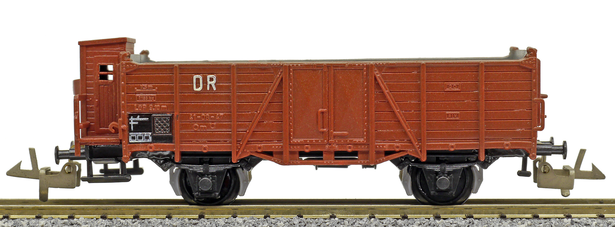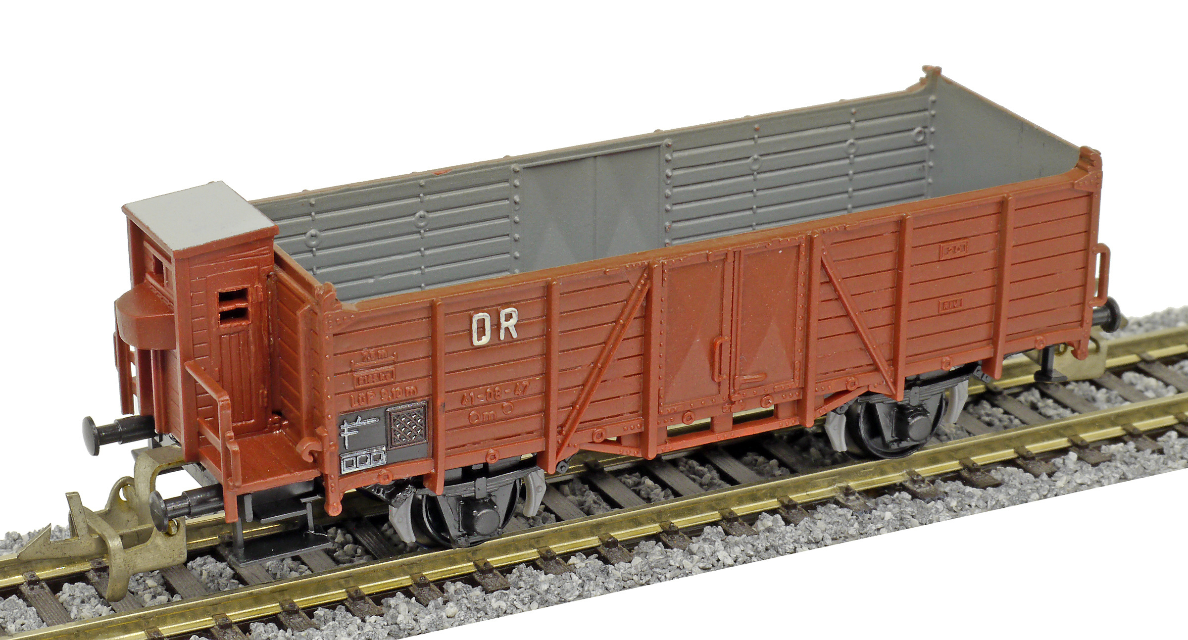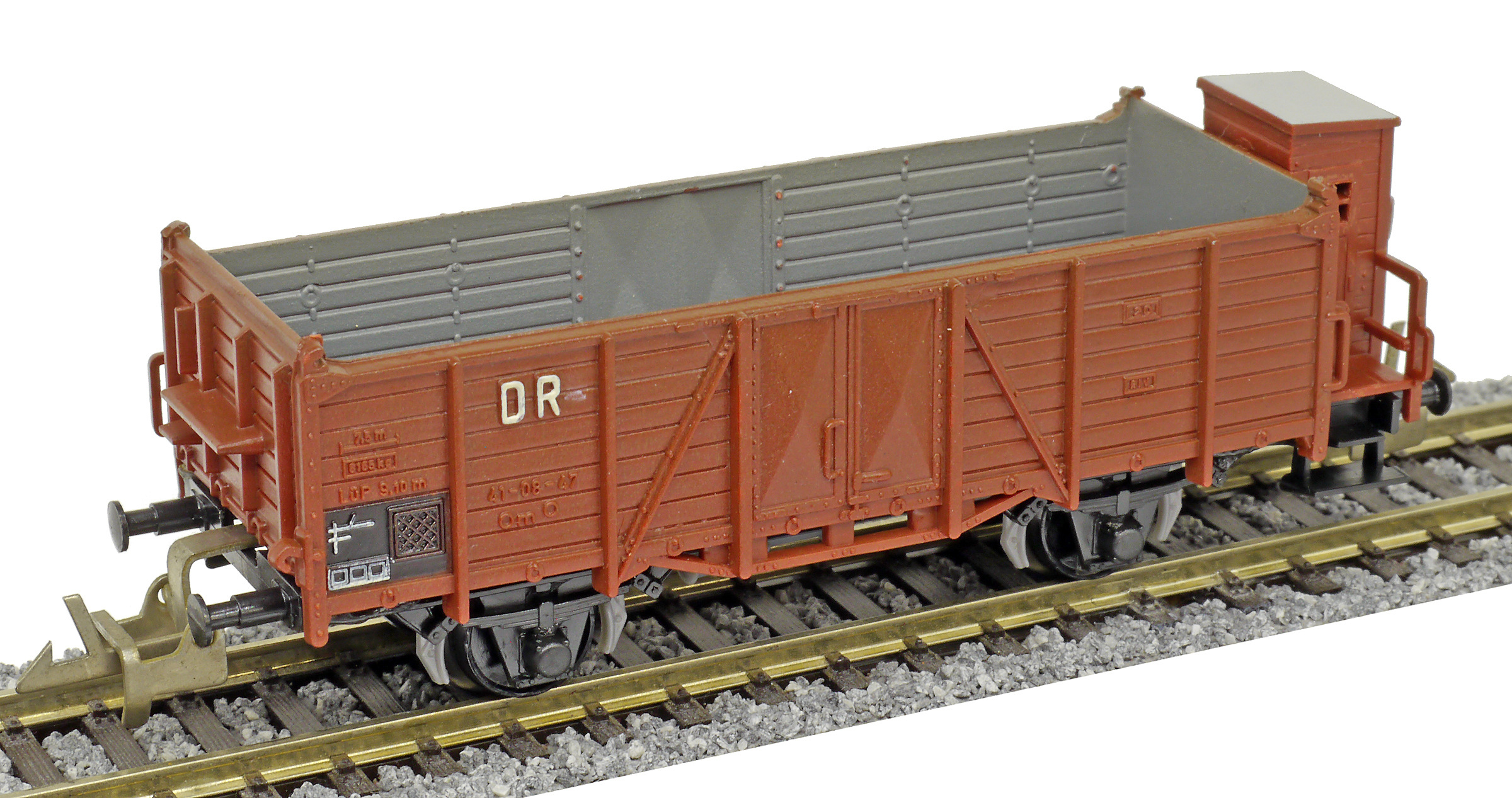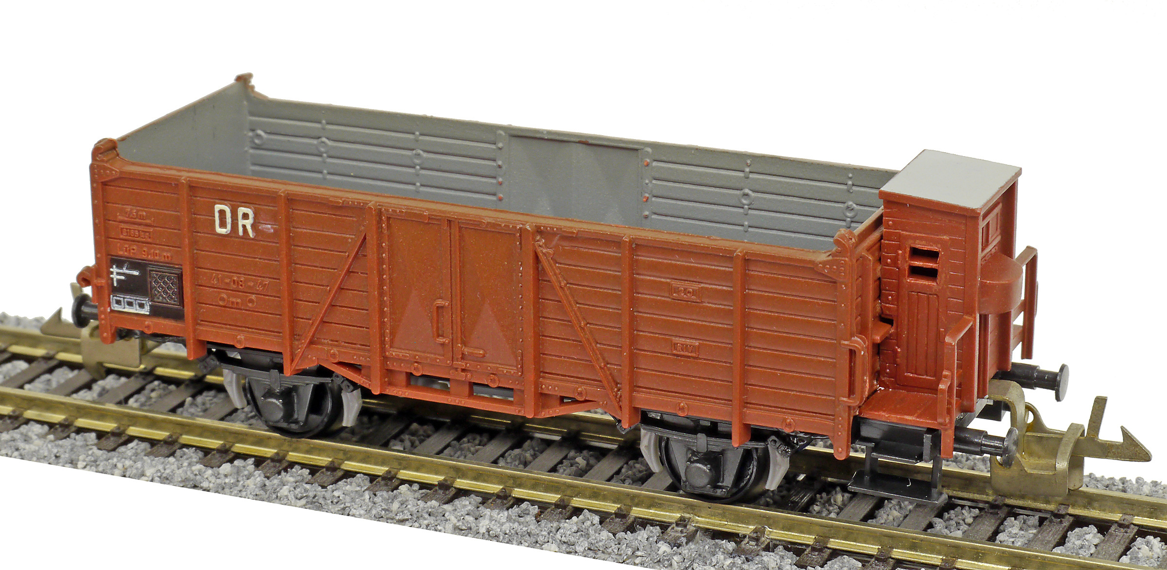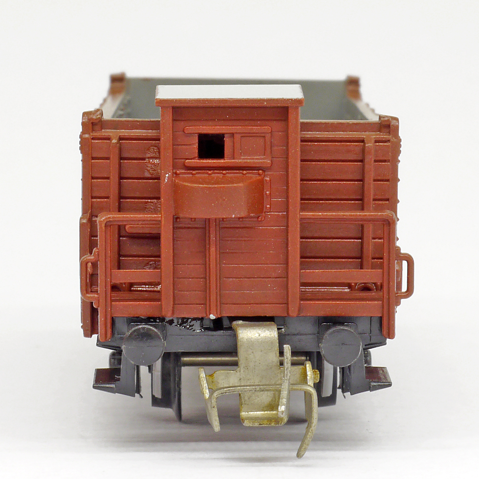 | otevřený nákladní vůz červenohnědý s brzdařskou budkou |