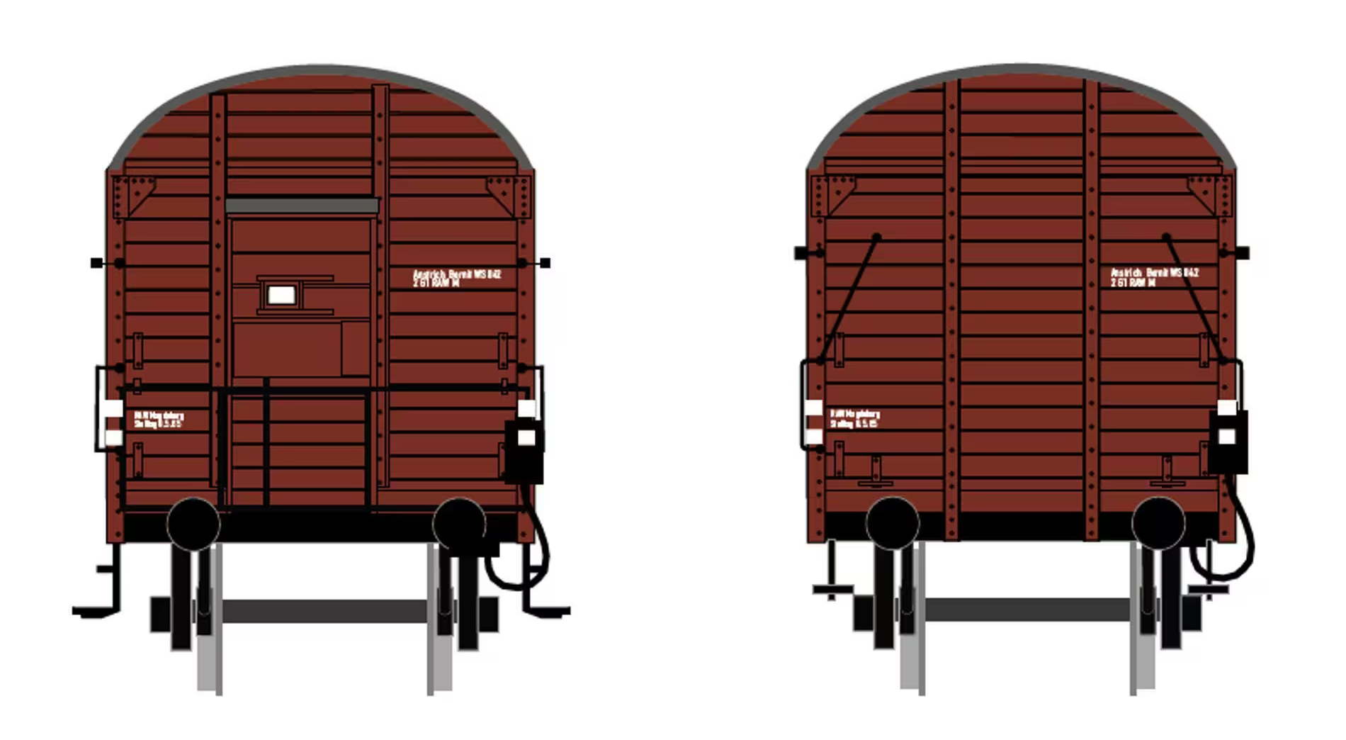 měřítko 1:120 - rozchod kolejí 12 mm kinematika krátkého spřáhla (KKK) podle normy NEM 358 106,7 mm - celková délka modelu přes nárazníky 2 - celkový počet náprav nebo rozložení náprav
