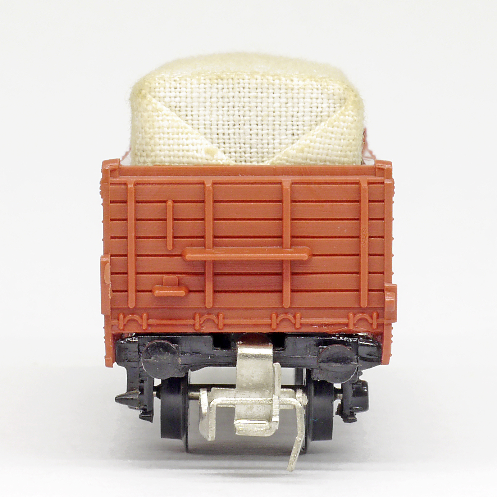 | otevřený nákladní vůz červenohnědý nebo zelený s plachtou |