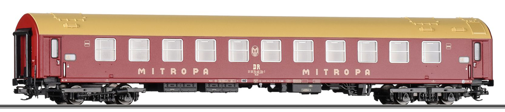| lůžkový vůz rubínově červený s olivovou střechou |