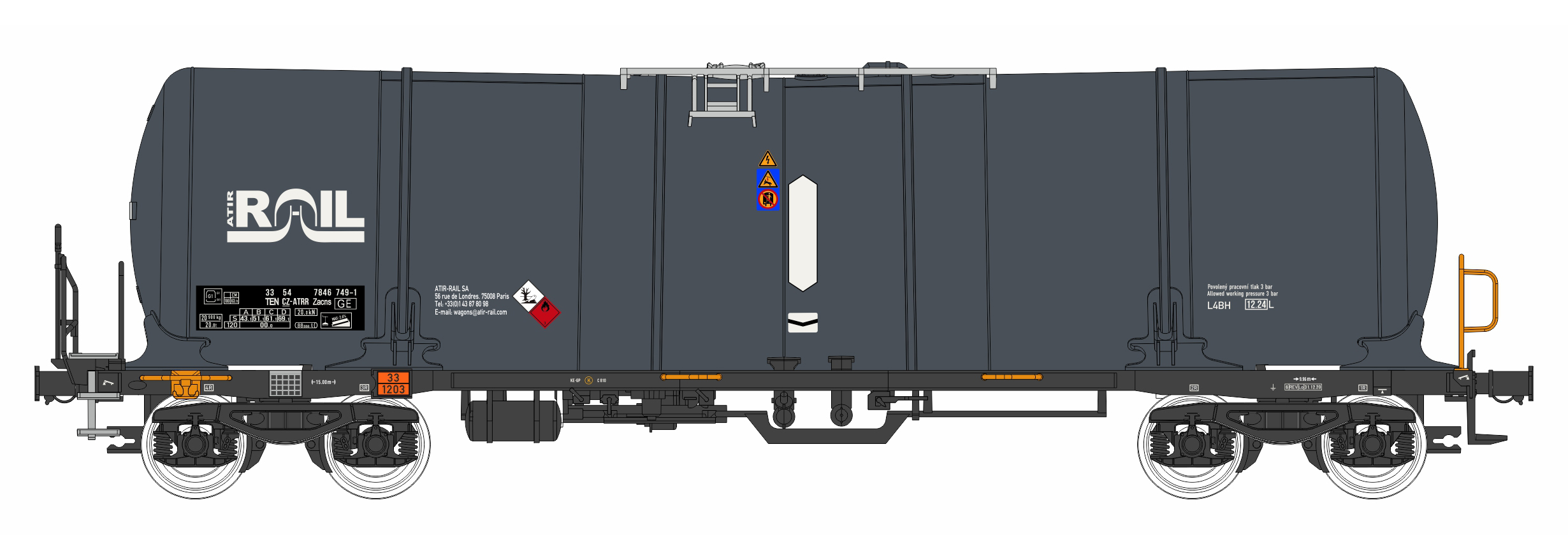 | kotlový vůz tmavě šedý s logem „ATIR-RAIL“ |