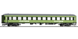 | rychlíkový vůz v barevném schematu „Flixtrain“ |