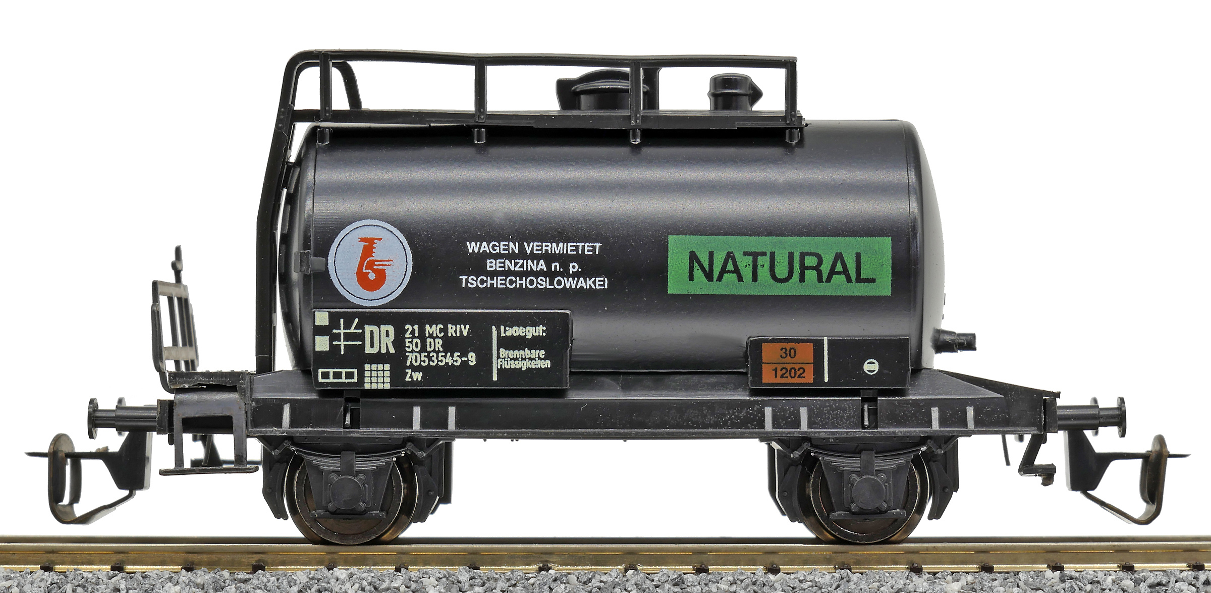 | kotlový vůz černý s potiskem „BENZINA-NATURAL“ |