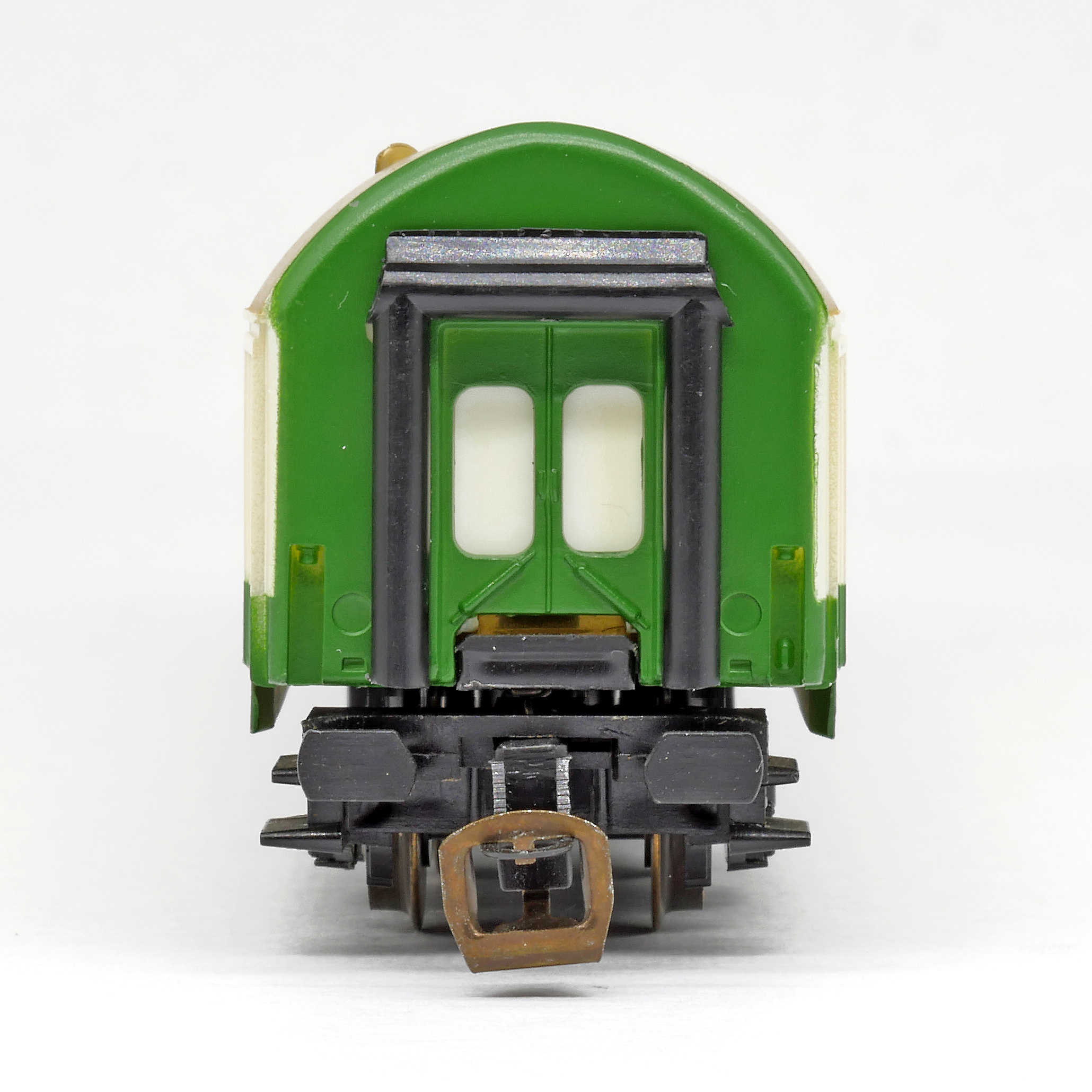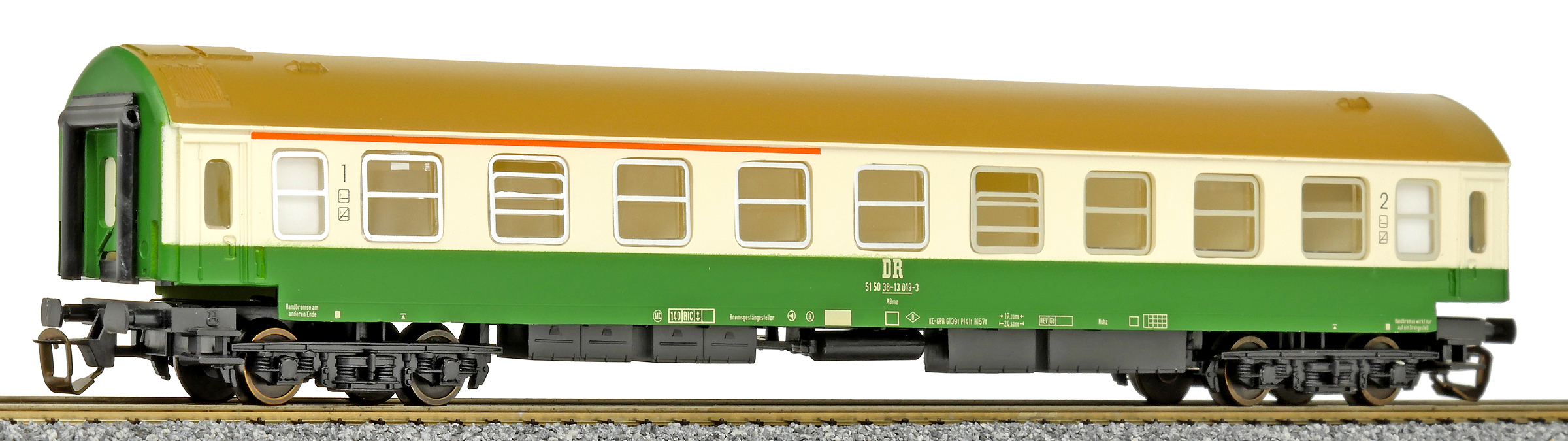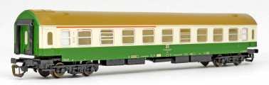 Popis   rychlíkový vůz zelený-slonová kost s olivovou střechou 1./2. tř.