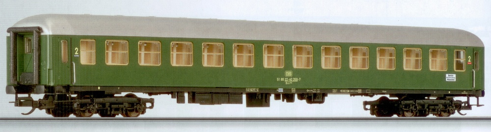 rychlíkový vůz zelený s šedou střechou 2. tř.