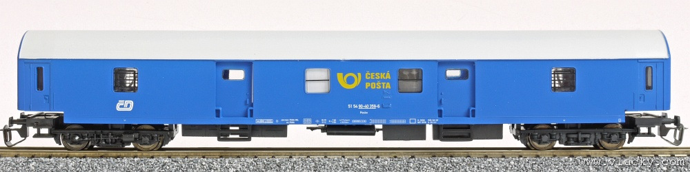 | lůžkový vůz modrý-bílý se světle šedou střechou |