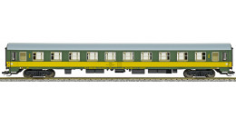 | rychlíkový vůz zelený se žlutým pruhem a šedou střechou 2. tř. |