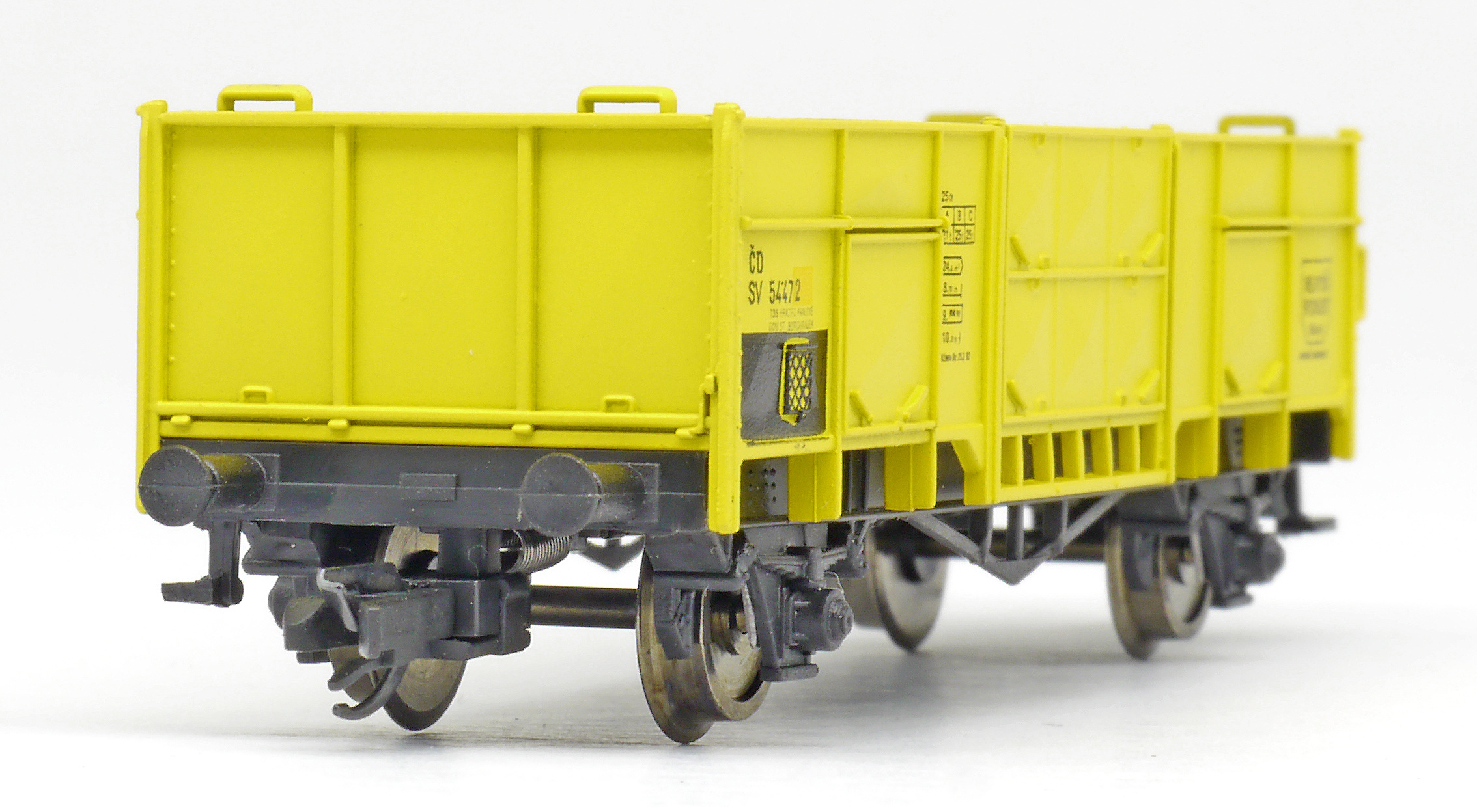 | otevřený nákladní vůz žlutý s černým pojezdem |