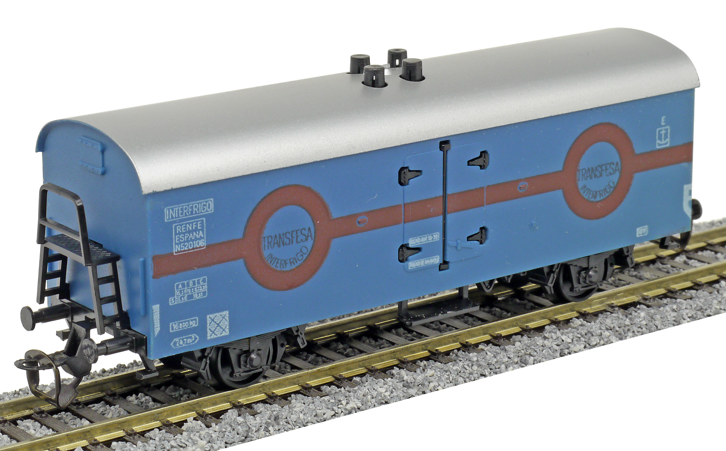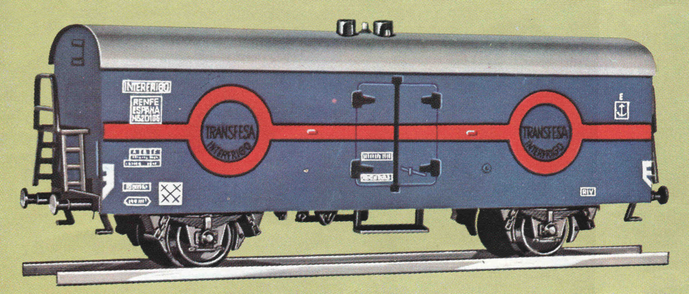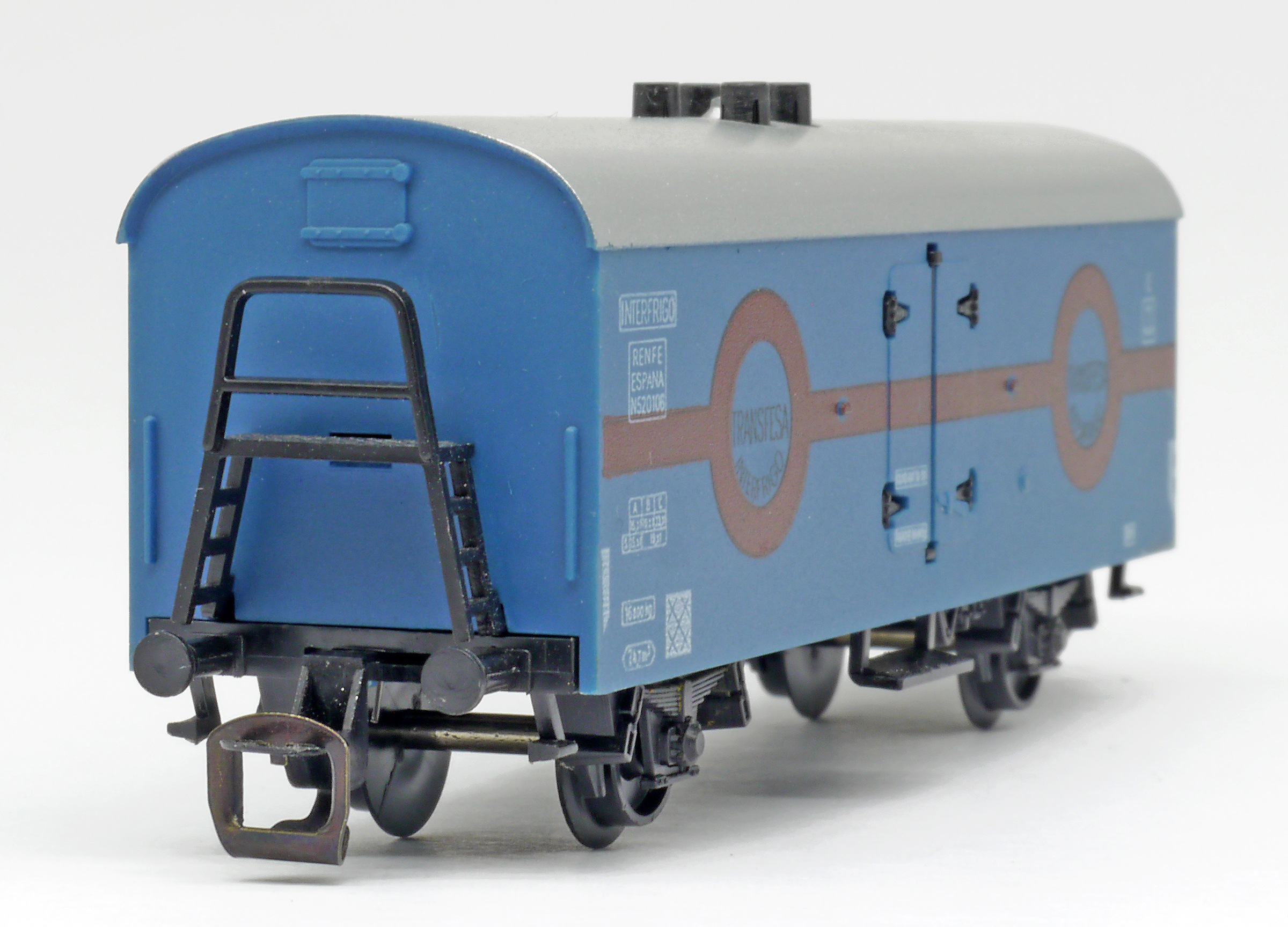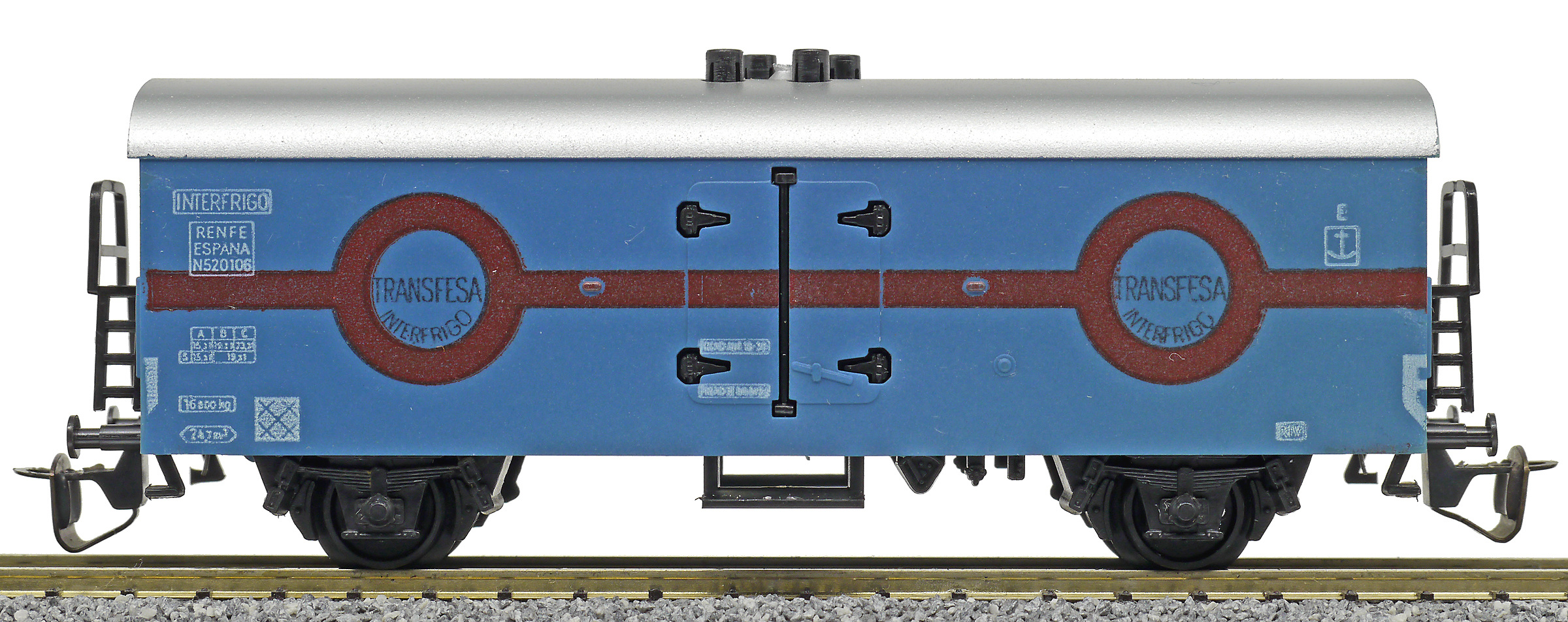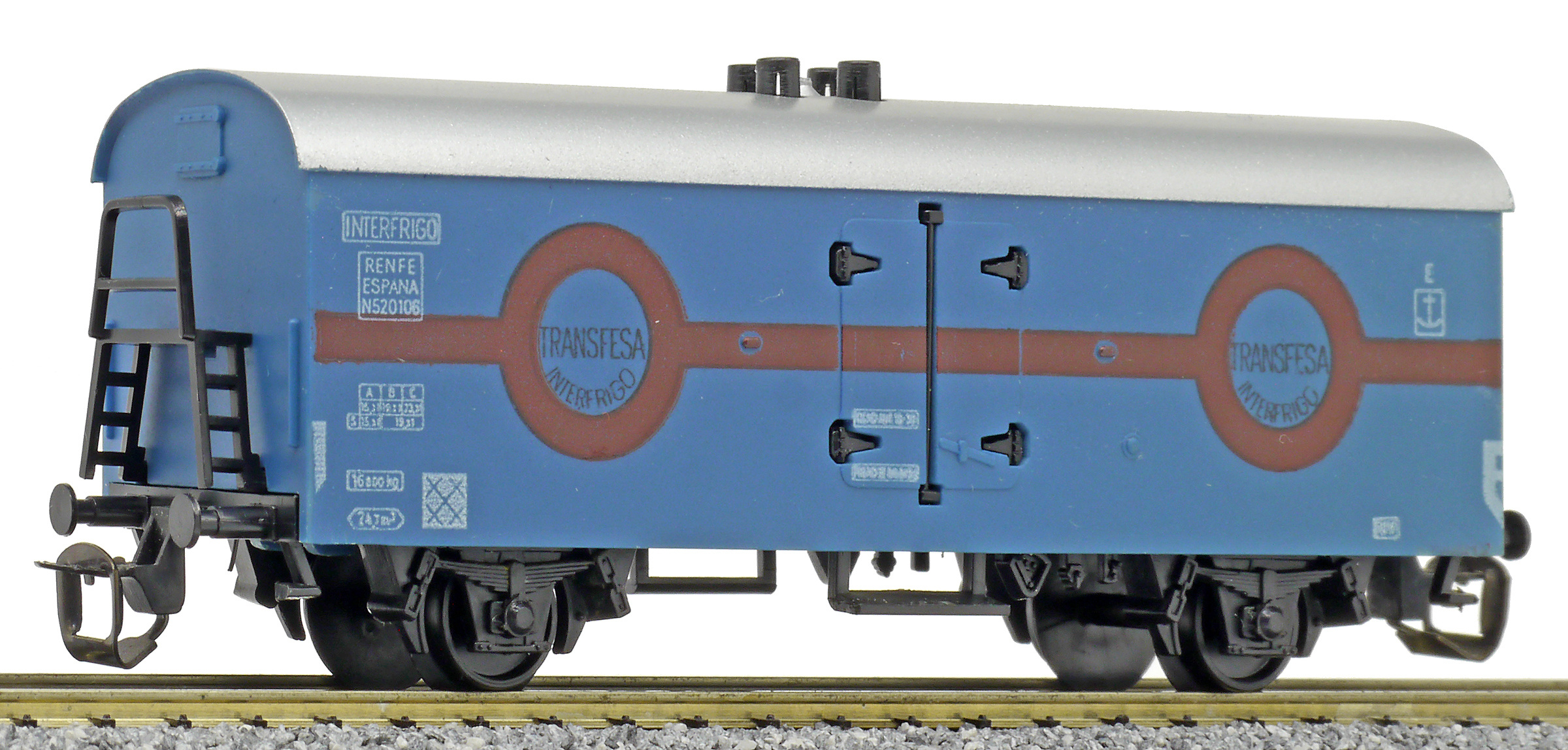 chladící vůz tmavě modrý se stříbrnou střechou „Transfesa Interfrigo“