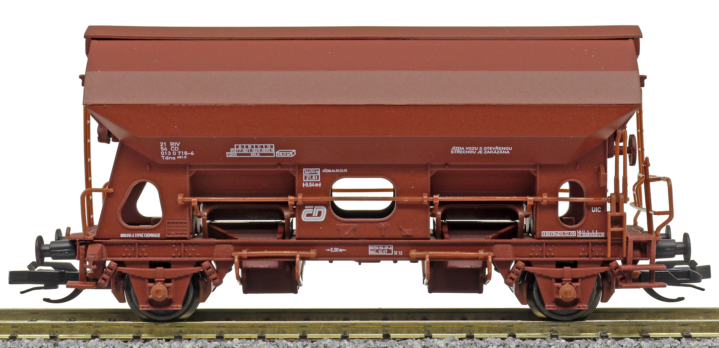 měřítko 1:120 - rozchod kolejí 12 mm kinematika krátkého spřáhla (KKK) podle normy NEM 358 81 mm - celková délka modelu přes nárazníky