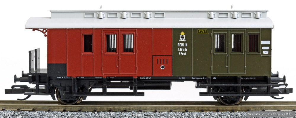 služební-poštovní vůz hnědý-zelený se světlešedou střechou