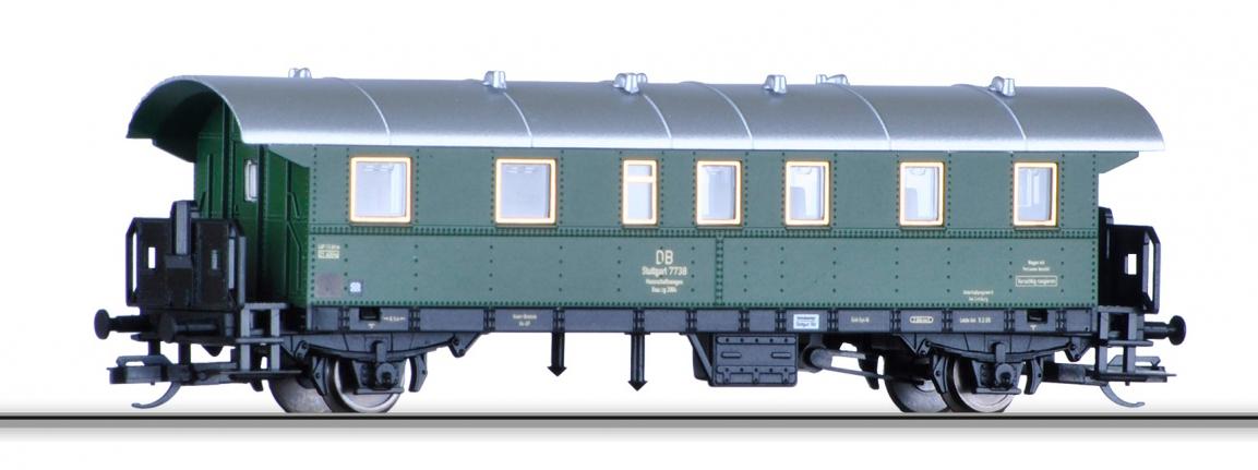 osobní vůz zelený s šedou střechou do stavebního vlaku „Bauzug“