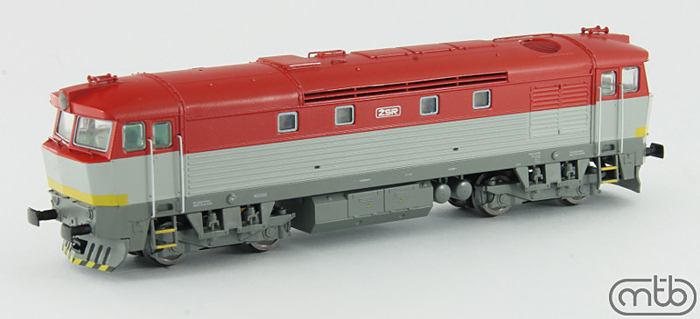 Popis   dieselová lokomotiva červená-bílá s výstražným pruhem