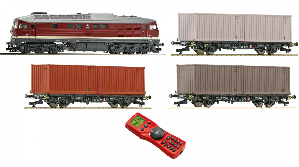 set dieselové lokomotivy BR 132 a tří vozů s kontejnery