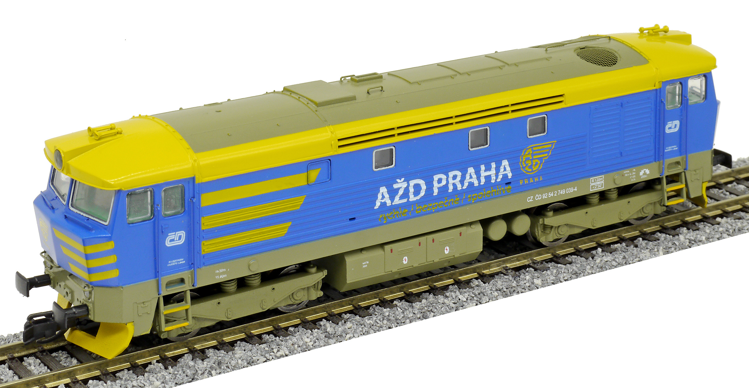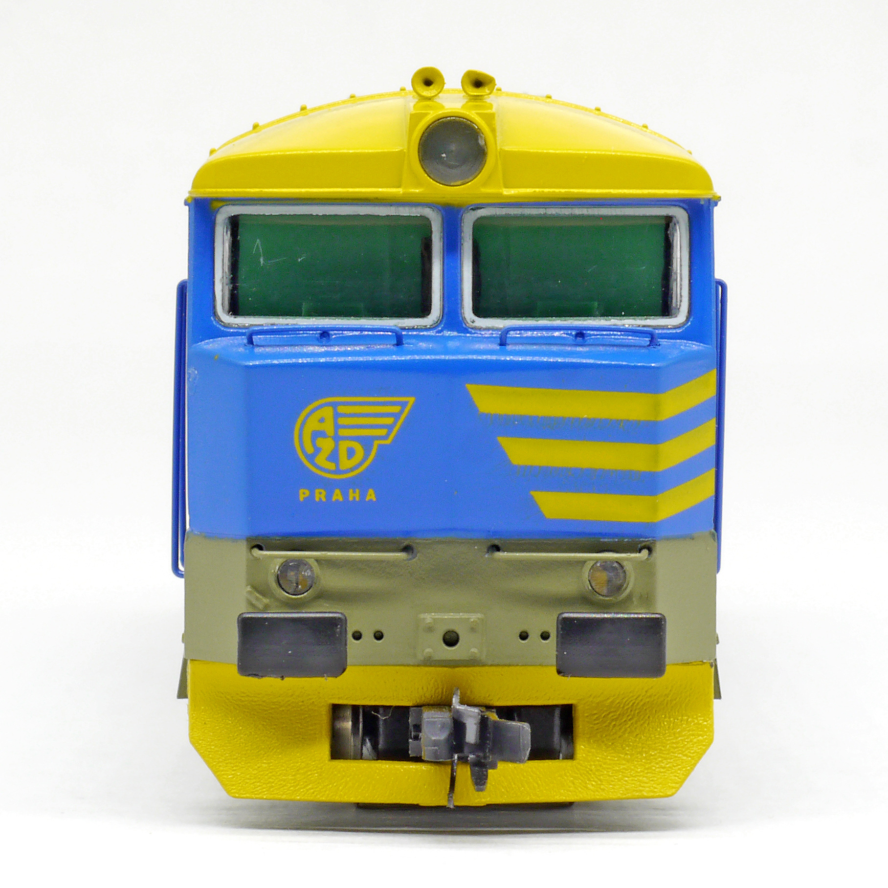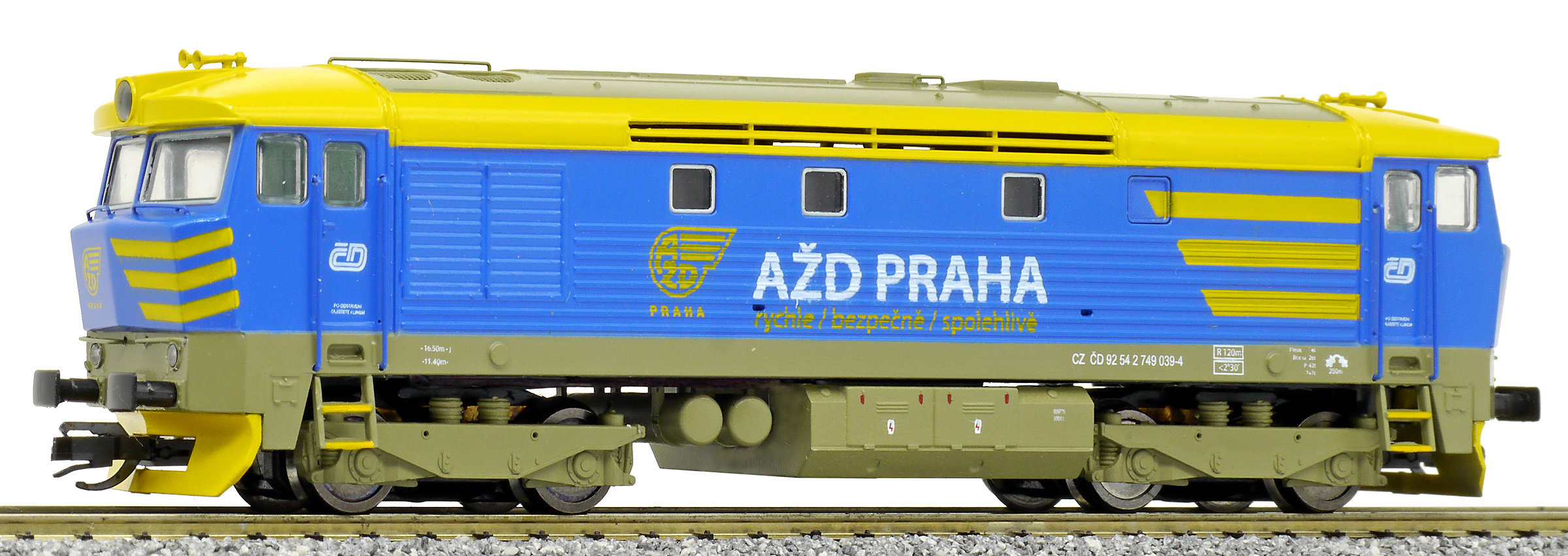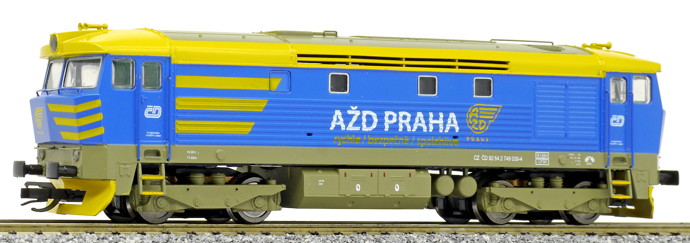 Popis   dieselová lokomotiva v barevném reklamním nátěru AŽD