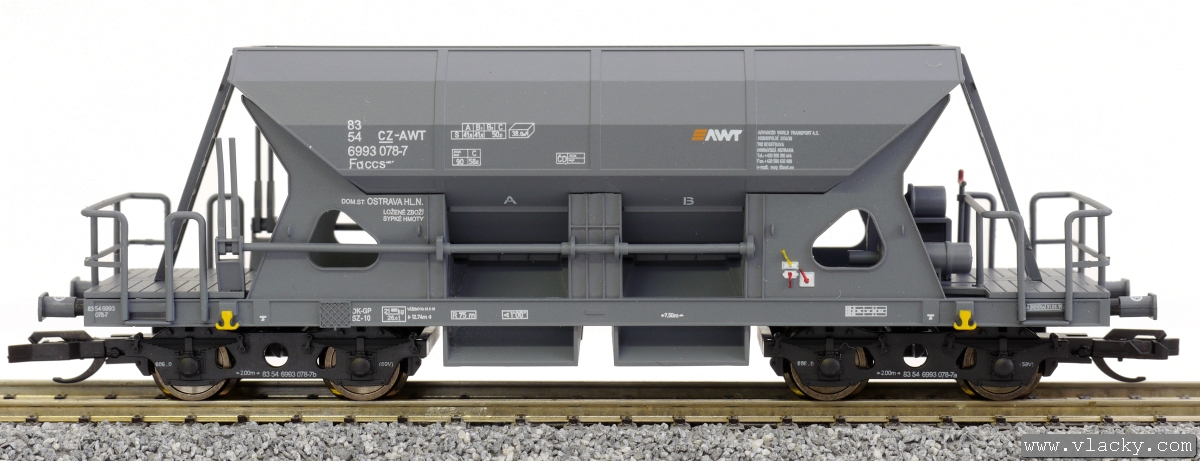 | nákladní samovýsypný vůz šedý s malým logem „AWT“ |