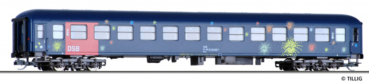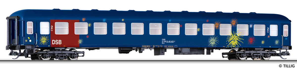 | modrý lůžkový vůz 2. tř., motiv ohňostroje |