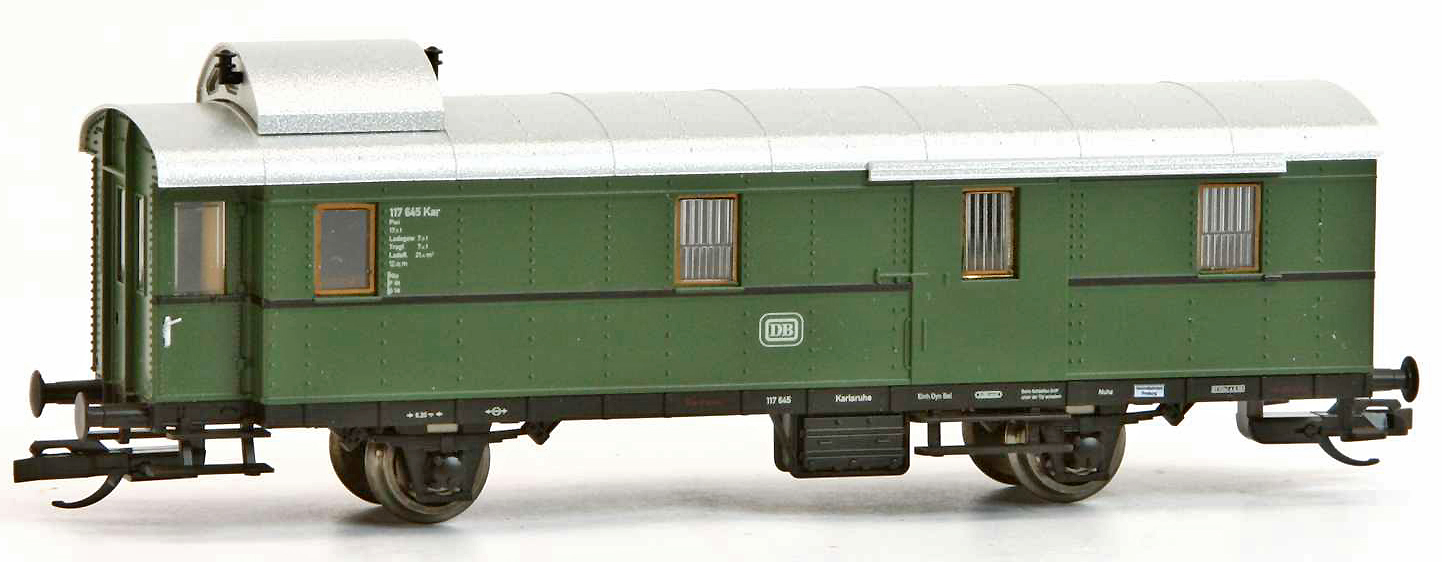 | zavazadlový vůz zelený se světle šedou střechou |