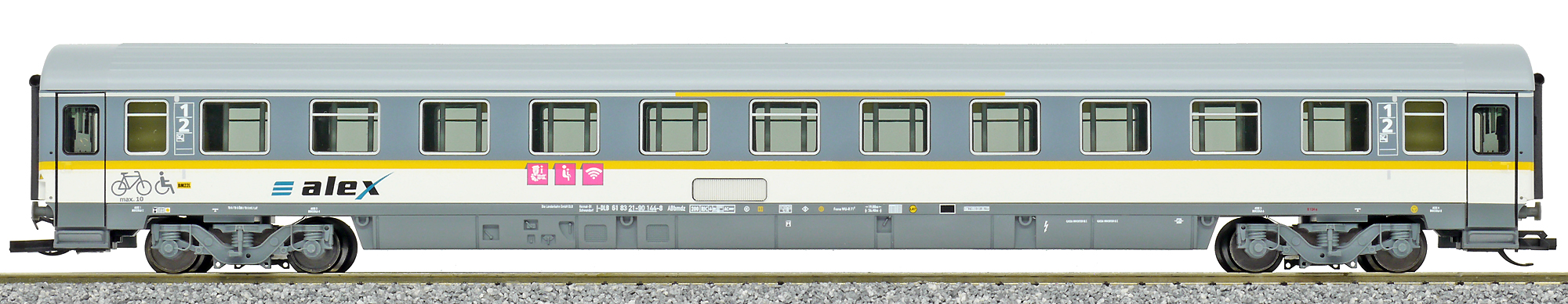 | rychlíkový vůz v barevném schematu „alex“ 1./2. tř. |