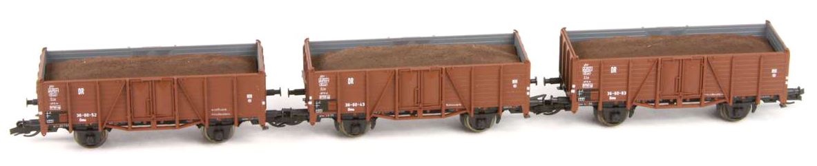 | set tří nákladních otevřených vozů s nákladem uhlí |