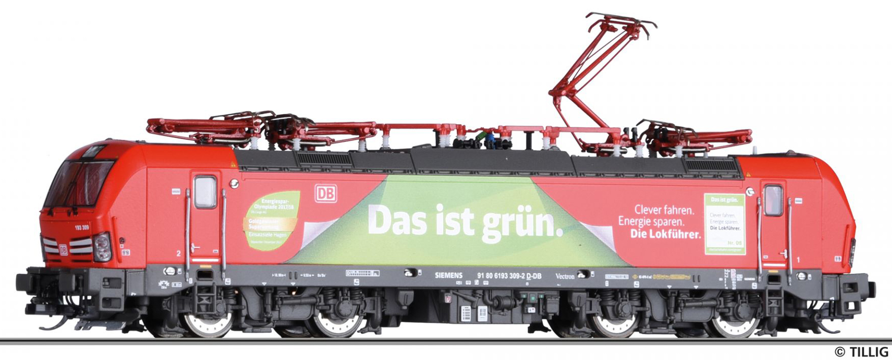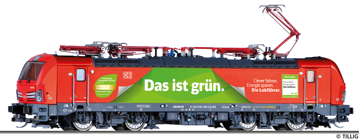 | elektrická lokomotiva s reklamním potiskem „Das ist grün“ |