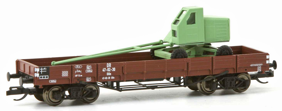 | nízkostěnný nákladní vůz červenohnědý s nákladem bagru T 170 |