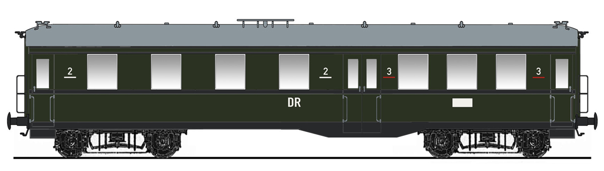 | osobní vůz zelený s šedou střechou 2./3. tř. |
