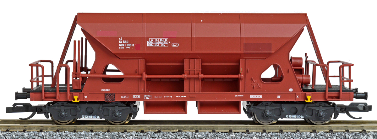 | samovýsypný vůz červenohnědý, černé plošinky, přetisk čísla |