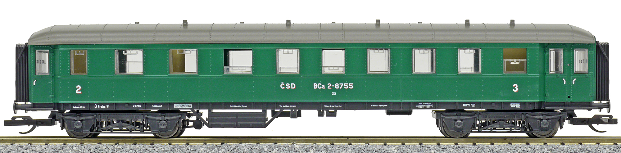 | osobní vůz zelený s tmavě šedou střechou 2./3. tř. |