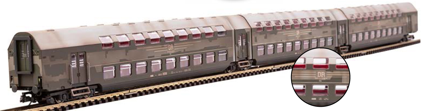 měřítko 1:120 - rozchod kolejí 12 mm osvětlení - 2 reflektory vpředu, 2 světla vzadu, přepínatelné podle směru jízdy vnitřní interiér vozu je možná instalace osvětlení interiéru kinematika krátkého spřáhla (KKK) podle normy NEM 358 digitální rozhraní podle NEM 651 s konektorem 6pin 4x2 - celkový počet náprav nebo rozložení náprav