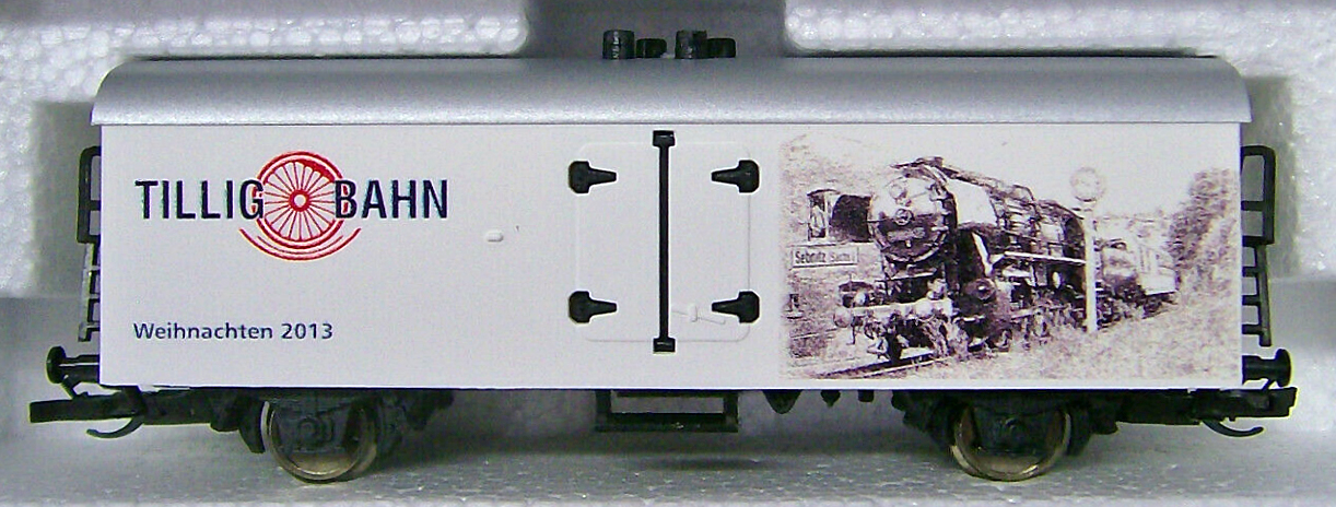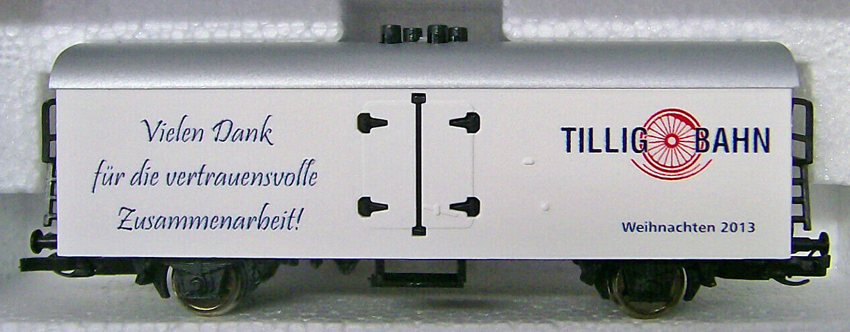 | chladící vůz bílý se stříbrnou střechou a s reklamním potiskem „Weihnachten 2013“ |