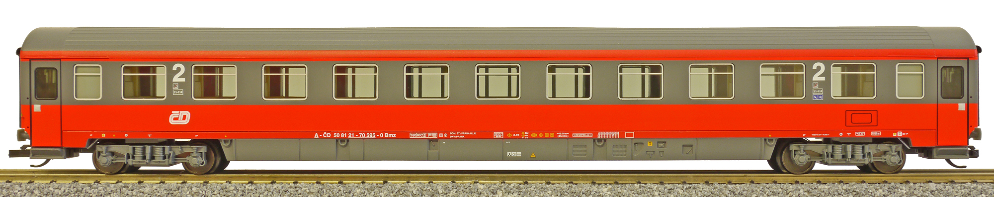 | rychlíkový vůz červený-tmavěšedý v barvách ÖBB 2. tř. |