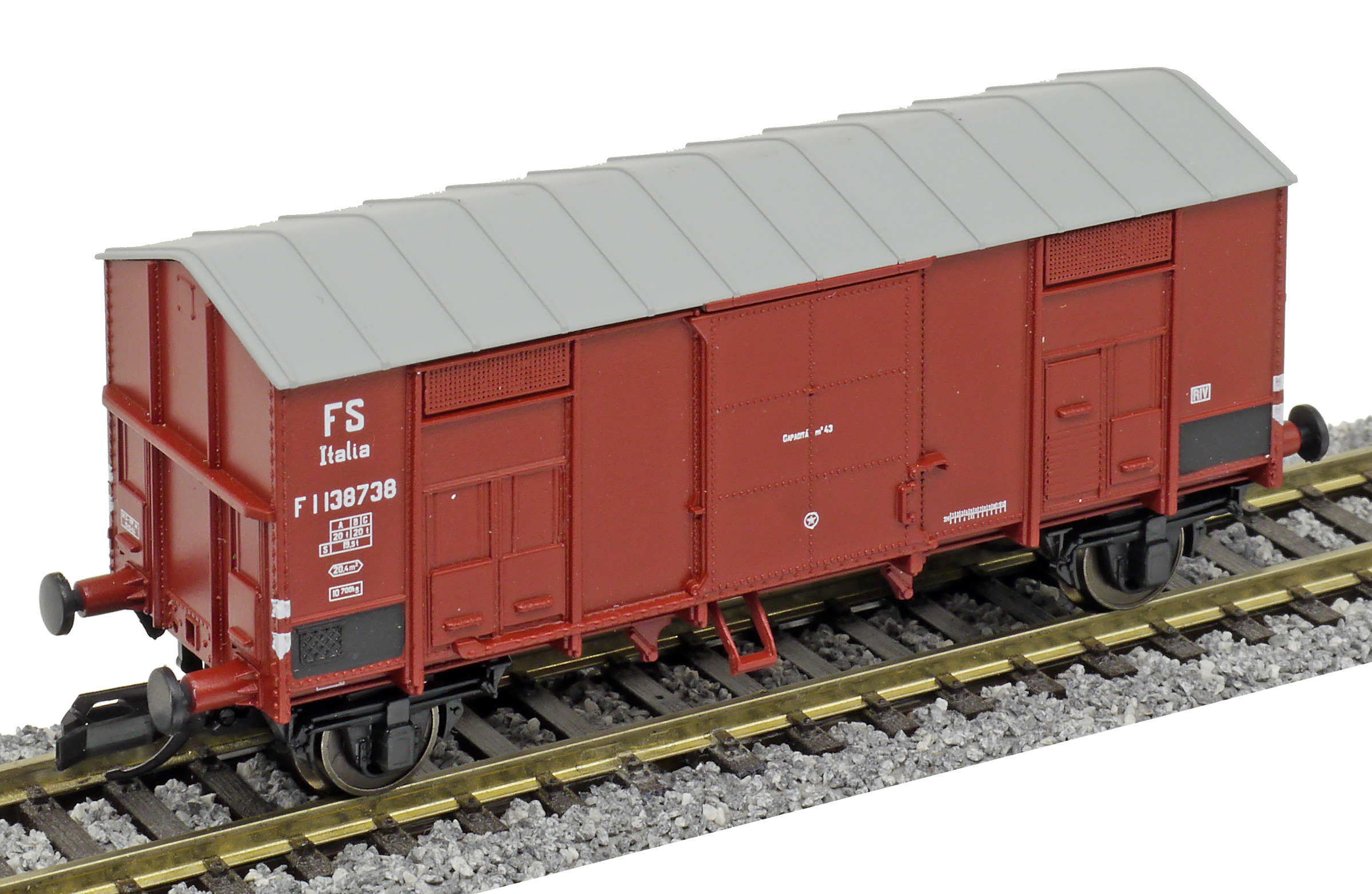 Popis   krytý nákladní vůz červenohnědý s šedou střechou