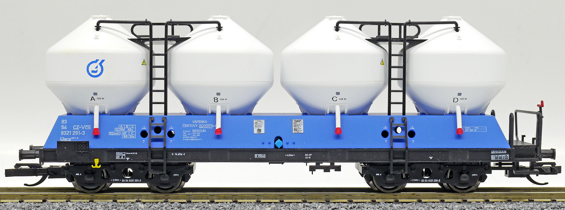 | nákladní samovýsypný vůz modrý s bílými nádobami „Vápenka Čertovy schody“ |