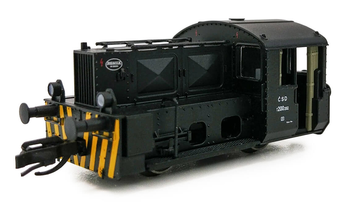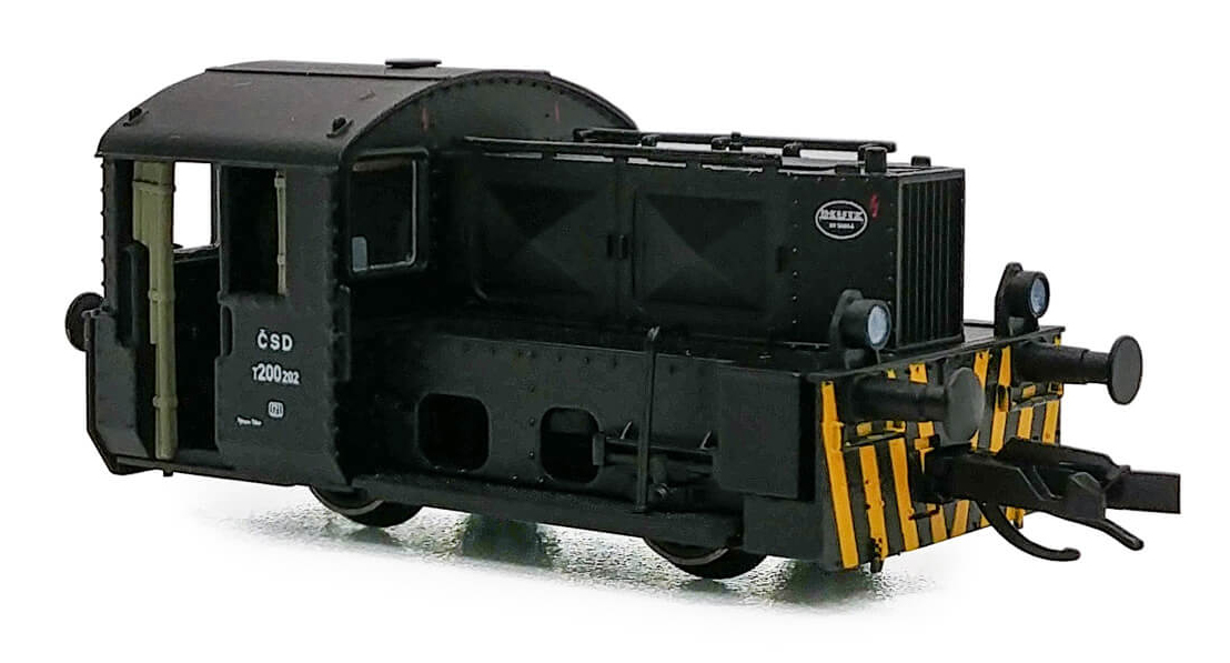 | dieselová lokomotiva černá, otevřená budka strojvedoucího |